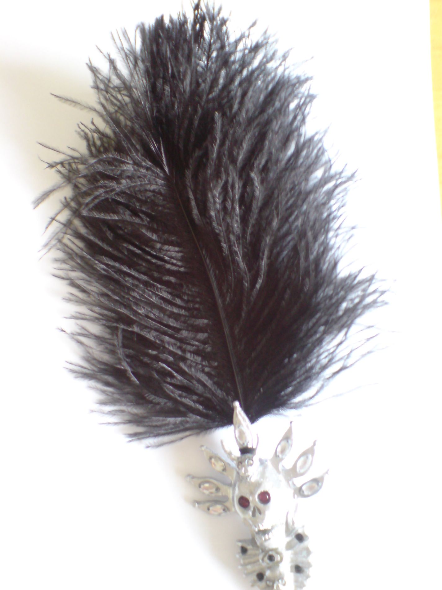 wollte hier auch mal ein paar bilder zeigen von meinem fertigen voodoopin von mike. an dieser stelle nochmal danke für das tolle kit! habe mir winzigkleine strasssteine besorgt, und habe die augen der beiden kleinen schädel auch mit kristallen bestückt. ich habe die federn gegen etwas längere strausenfedern eingetauscht.