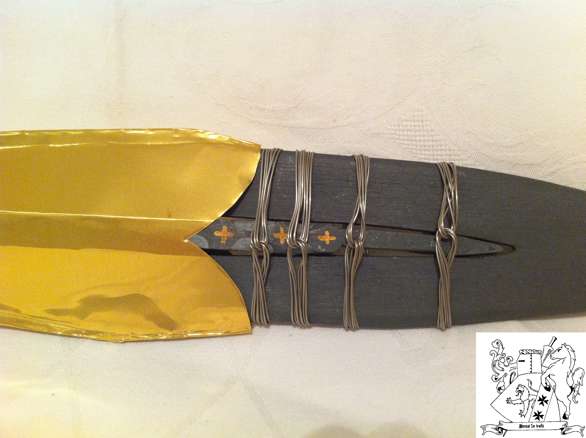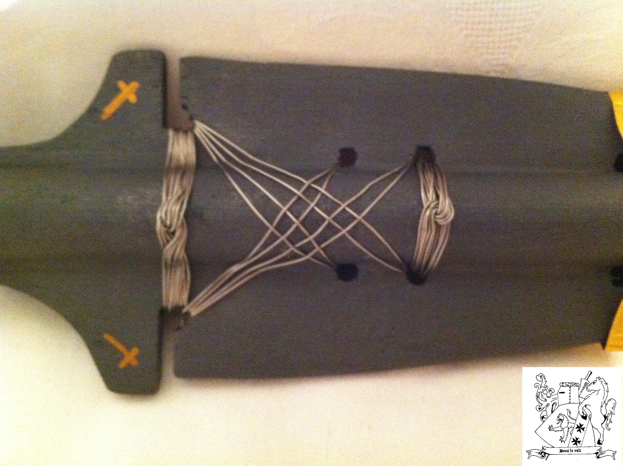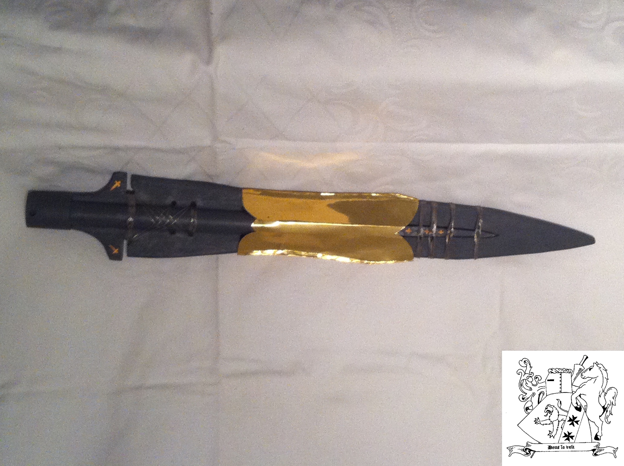 Ja, ist mein Familienwappen, (bekomme es leider nicht durchsichtig), meine Familie gibt es schon sehr lange. Waren alles Söldner und Glockengießer bis WWII, beide Großväter hatten leider eine zu schwarze Uniform, und danach einer von ihnen bei der Fremdenlegion. Haben deswegen auch den Familiensitz und alles andere verloren. Haben uns von ganz unten wieder hochgearbeitet aber nun ein paar bilder von dem Speer des Schicksals (Heiligen Lanze) die ich vom Dachspeicher geholt habe, Quelle dafür war damals Wikipedia. Material dafür waren Holz, Draht und Farbe. es hat eine Länge von 50,7 cm.