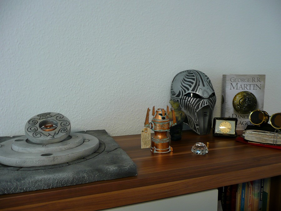 Momentan versuch ich an ein Bastelkit für die Jedi Rüstung zu kommen, da meine Fähigkeiten für das Pepakuraverfahren doch nicht soo toll sind. Ich hoffe, dass ich ein geeignetes Kit finden kann und dann selber einfärben und so zum Sith Kostüm umfunktionieren kann. Aber das ist eher ein längerfristiges Projekt, also wie bei all meinen Props mit viel Geduld verbunden.