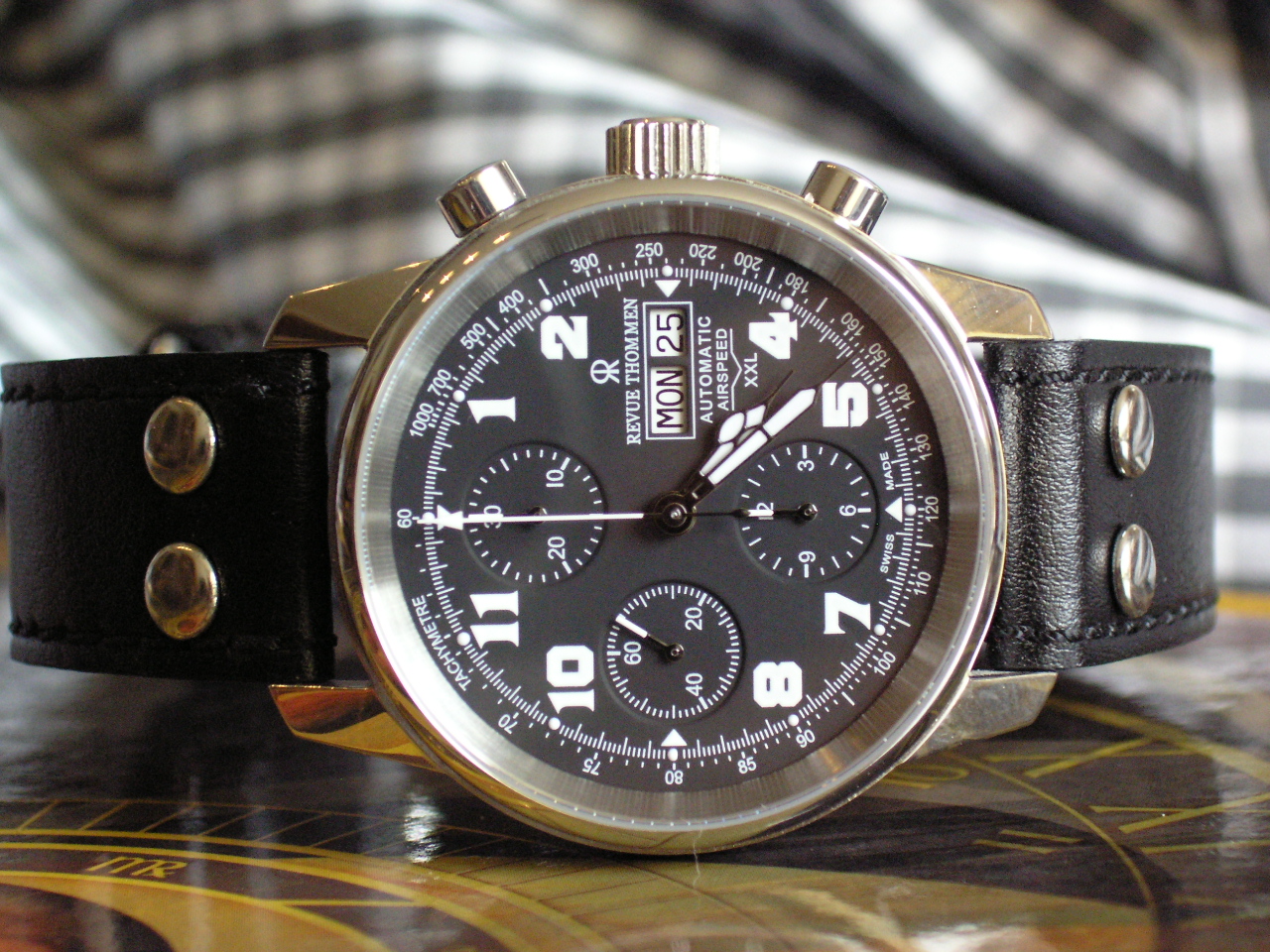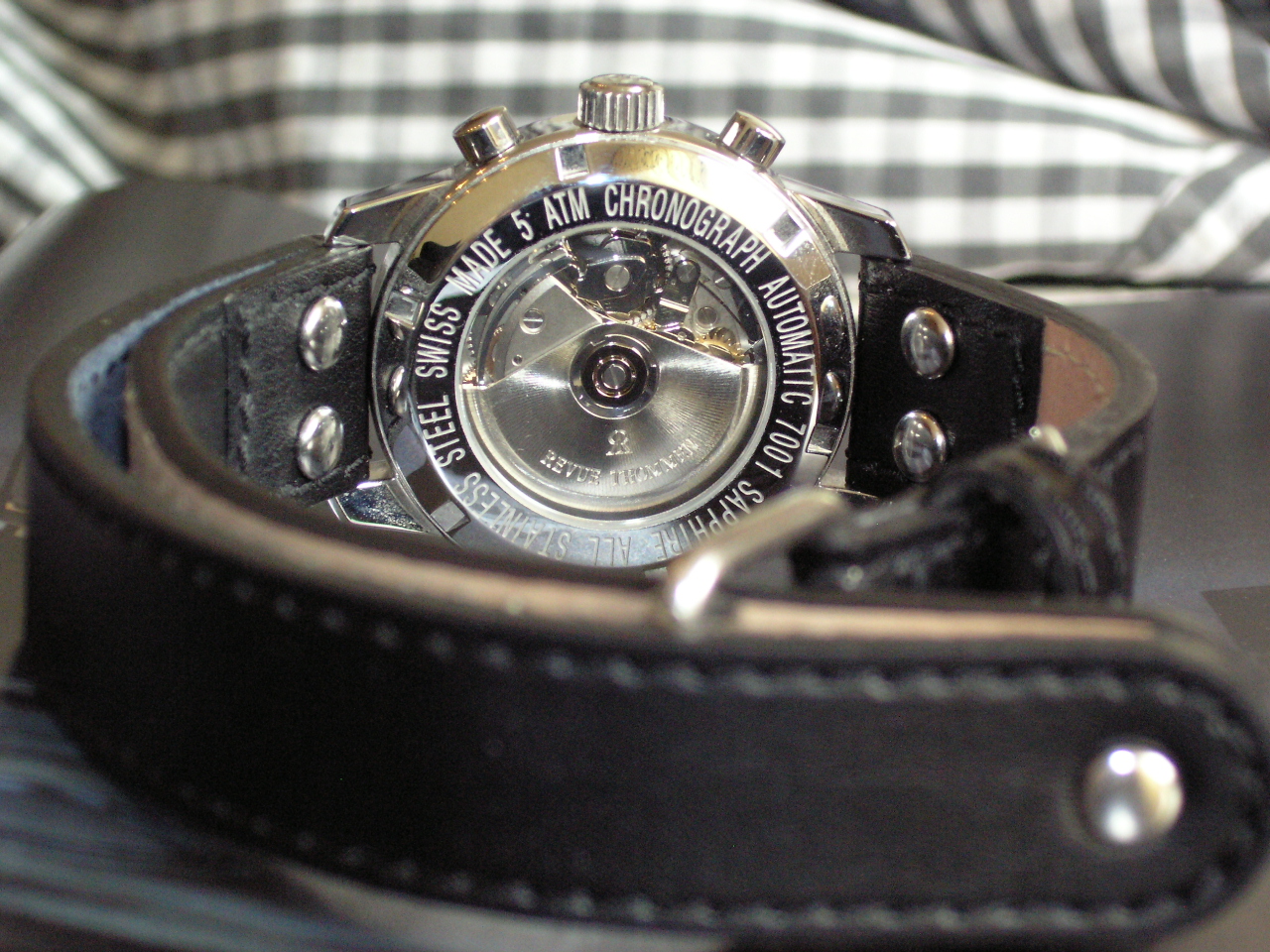 Wie heute versprochen, hier nun die Fotos der umgemodelten Revue Thommen Airspeed XXL. Auf dem ersten Foto mit dem Originalband, auf den restlichen mit dem neuen. Ich fand das Experiment geglückt. Nur Wristtime bekommt die Gute irgendwie keine mehr...