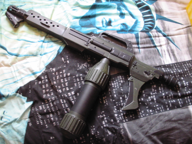 -einen M79 Granatwerfer ebenfalls aus "Terminator 2-Judgment Day" komplett selber gebaut aus Holz und einem PVC Rohr