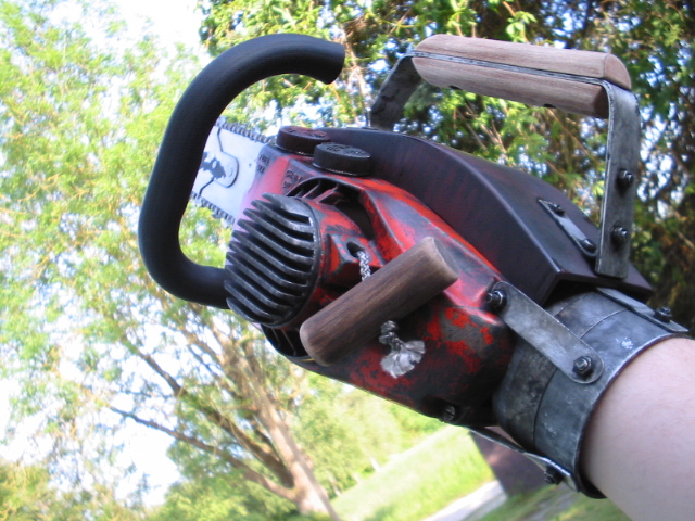 -Ashley J. Williams "Ash" "Chainsaw Arm" aus "Armee der Finsternis" komplett selber gebaut aus einer Homelite XL Kettensäge, Aluminium, Holz und Plasticsheet. Komplett tragbar!