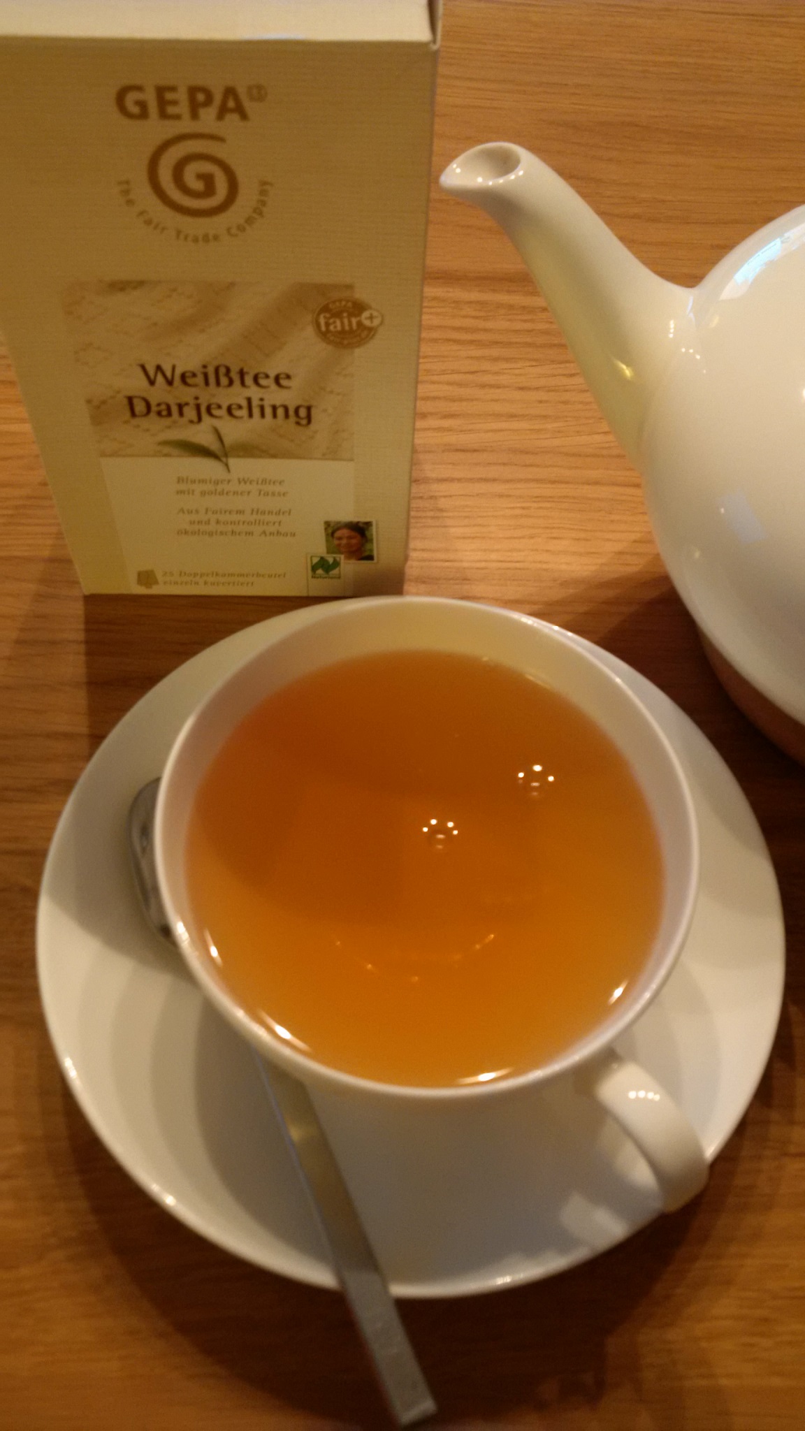 Haut mich jetzt nicht vom Hocker. Vielleicht einen Tacken besser als Grüntee, aber kein wirklicher Ersatz für Schwarztee. Das hier war wie gesagt ein Versuchsballon mit Beuteltee von Gepa. Ich werde beizeiten mal einen zweiten Versuch starten mit losem Weißtee von Ronnefeldt.