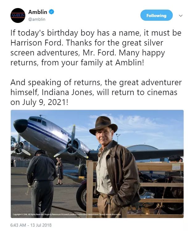 Amblin hat vor zwei Stunden Geburtstagswünsche und mehr getwittert.