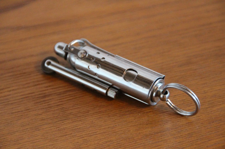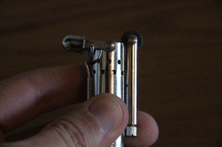Das sechseckige Feuerzeug ist vmtl. rund 100 Jahre alt, der gestanzte Aluminium-Rahmen um den Messing-Tank ist typisch für die Zeit. Das silbrige ist eine Replika des klassischen Navy-Feuerzeugs (die normalerweise aus Messing bestehen). Das Mini-Feuerzeug an der Schlüsselkette ist nichts besonderes, gibt's bei eBay aus China für ein paar Cent. Find' ich aber superpraktisch und dank des kleinen Gummirings hält der Tank überraschend lange. Und das Zippo ist die klassische Variante in "Street Chrome", also verchromt, aber von Werk aus fein "verkratzt". Find' ich super, denn das glänzende hätte ich wieder viel zu pfleglich behandelt und mich über jeden Kratzer geärgert.