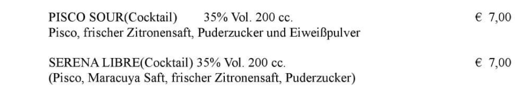 Pisco klingt lecker. Typisch Südamerikanisch. Probiere ich demnächst aus.