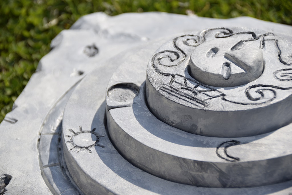 Ich beginne einmal mittendrin mit den Steinscheiben von Atlantis. Sie bestehen aus XPS (Styrodur), welches zurechtgesägt, geschliffen, mit Holzleim zusammengeklebt und dann mit mehreren Schichten Acrylfarbe bemalt wurde.