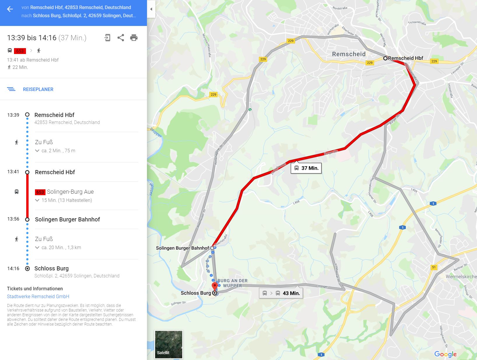 Die nächstliegende S-Bahn Station ist zwar Solingen Schaberg Bf (S7) aber von dort aus sind die Verbindungen - so weit ich weiss - nicht so doll. Der nächstliegende Hauptbahnhof wäre Remscheid Hauptbahnhof. Ich glaube von Remscheid kommt man auch schneller zum Veranstaltungsort, denn von dort gibt es eine direkte Anbindung an den Solingen Burger Bahnhof. Und vielleicht kann Dich dann sogar einer der anderen Summitteilnehmer ggfs dort abholen kommen.