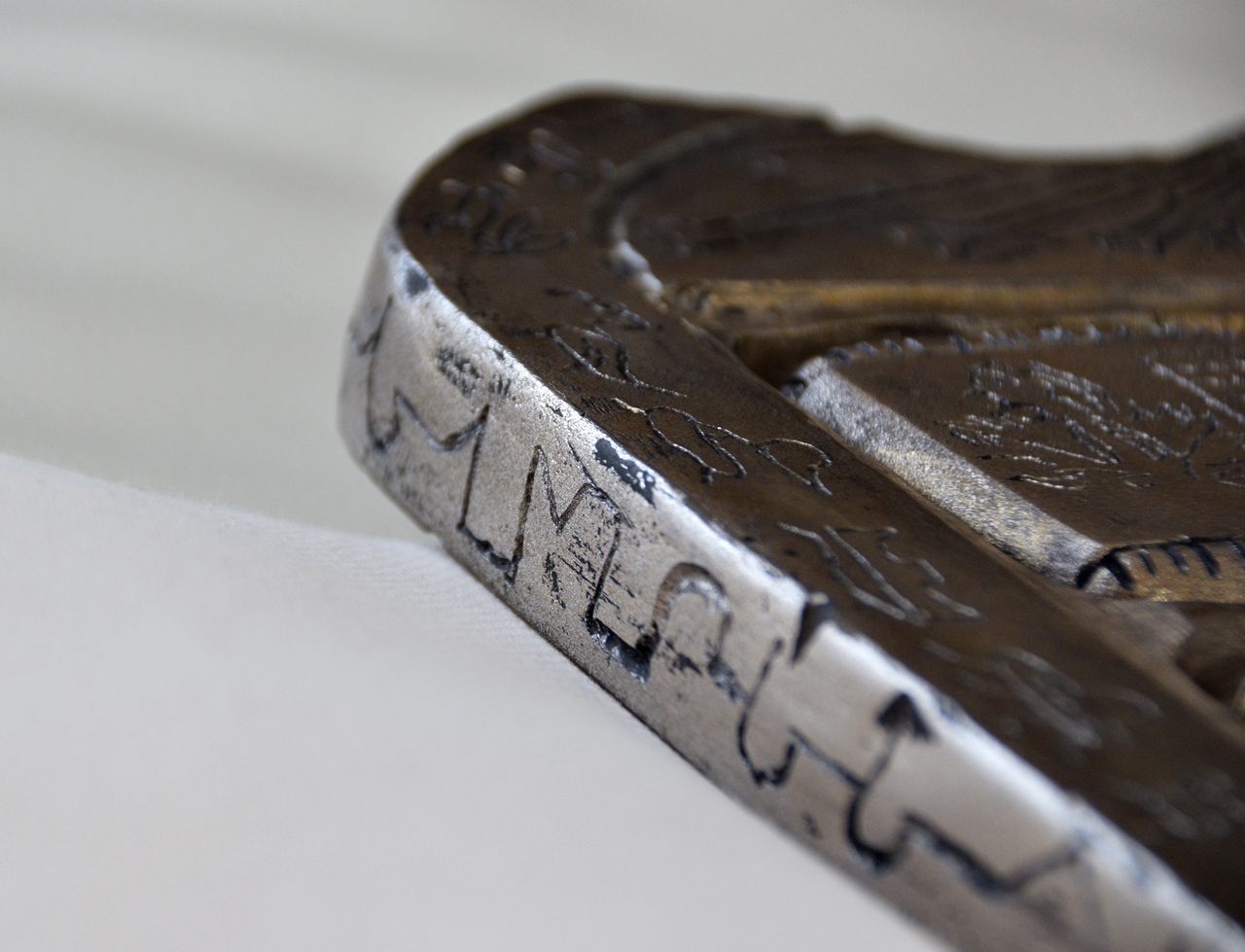ich biete hier ein Exemplar meines neuesten Vorhabens, die Tafel des Ahkmenrah aus der Filmreihe "Nachts im Museum" an. Dieses Projekt ist nun nach viel Vorzeichnen, Ausschneiden, Gießen, Schleifen, Fräsen, Färben etc. endlich fertig geworden.
