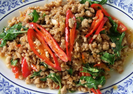 Bei uns gab es heute Abend "Phat Kaphrao Mu Sap" (ผัดกะเพราหมูสับ)