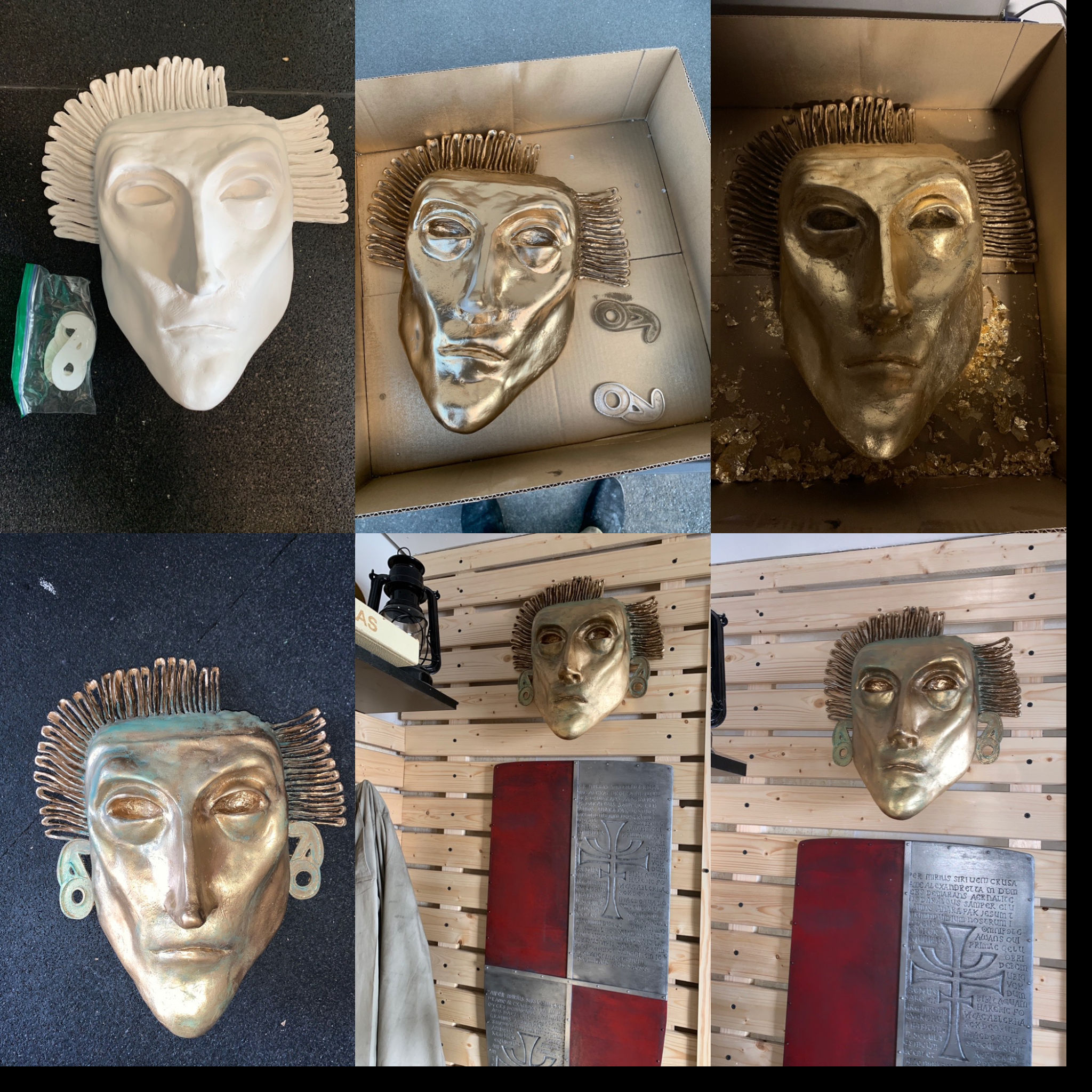 Zum Schluss habe ich noch mit grüner Acrylfarbe die Patina simuliert bzw. die Maske gealtert.