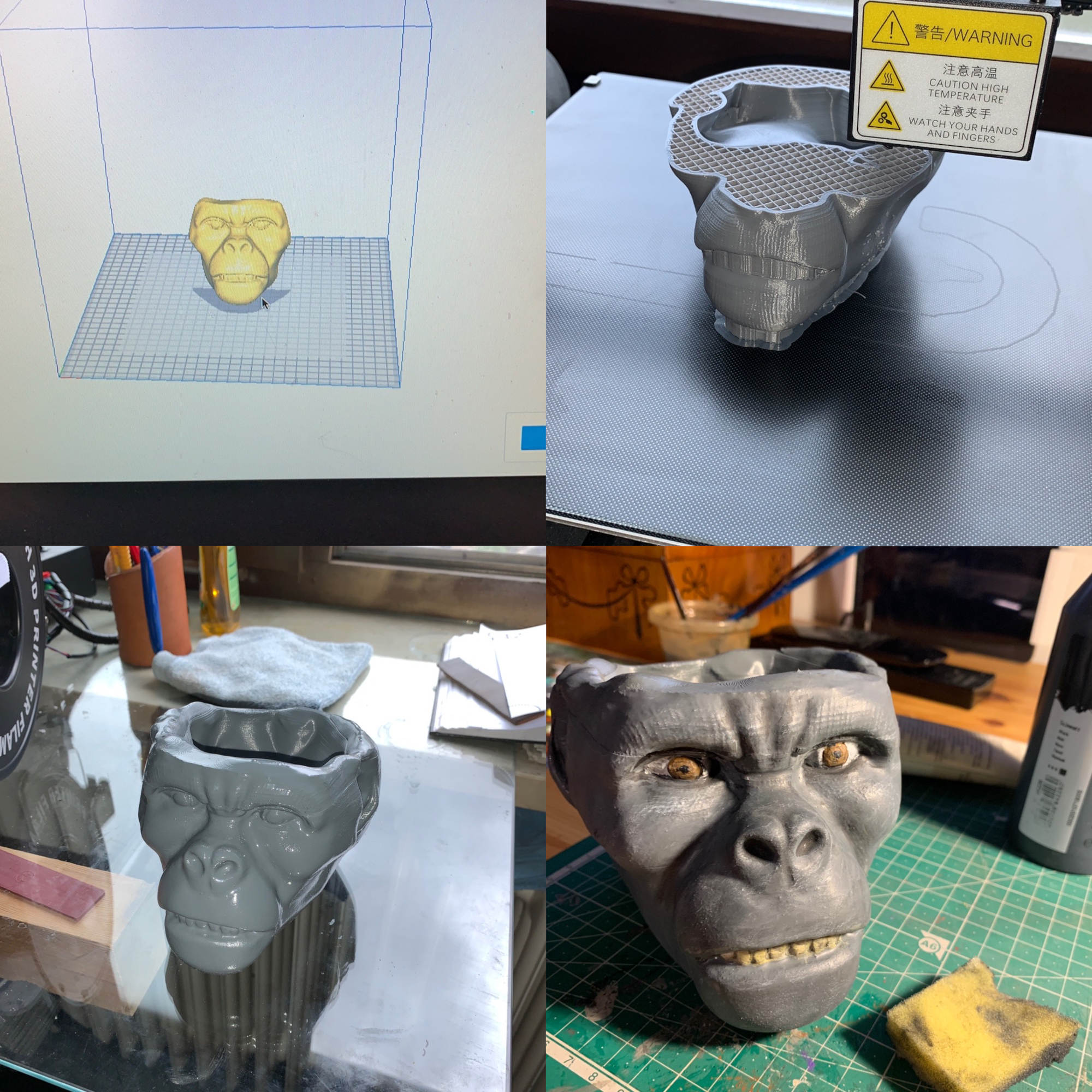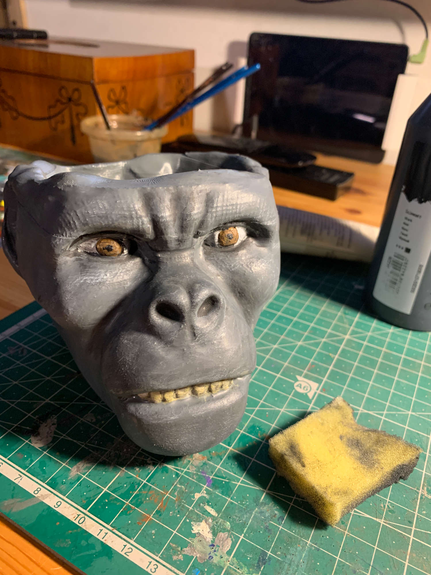 Affenkopf ist auch aus einer bearbeiteten Vorlage geduckt und bemalt. Überlege ich aber noch ihn in Kunstharz zu gießen. Die Augen werde ich wahrscheinlich nicht so lassen, bin ich über Anregungen aber sehr erfreut.