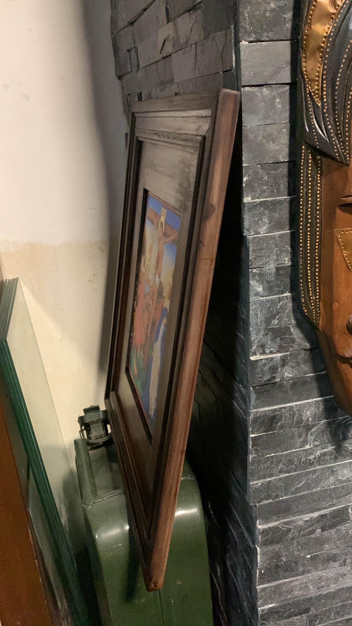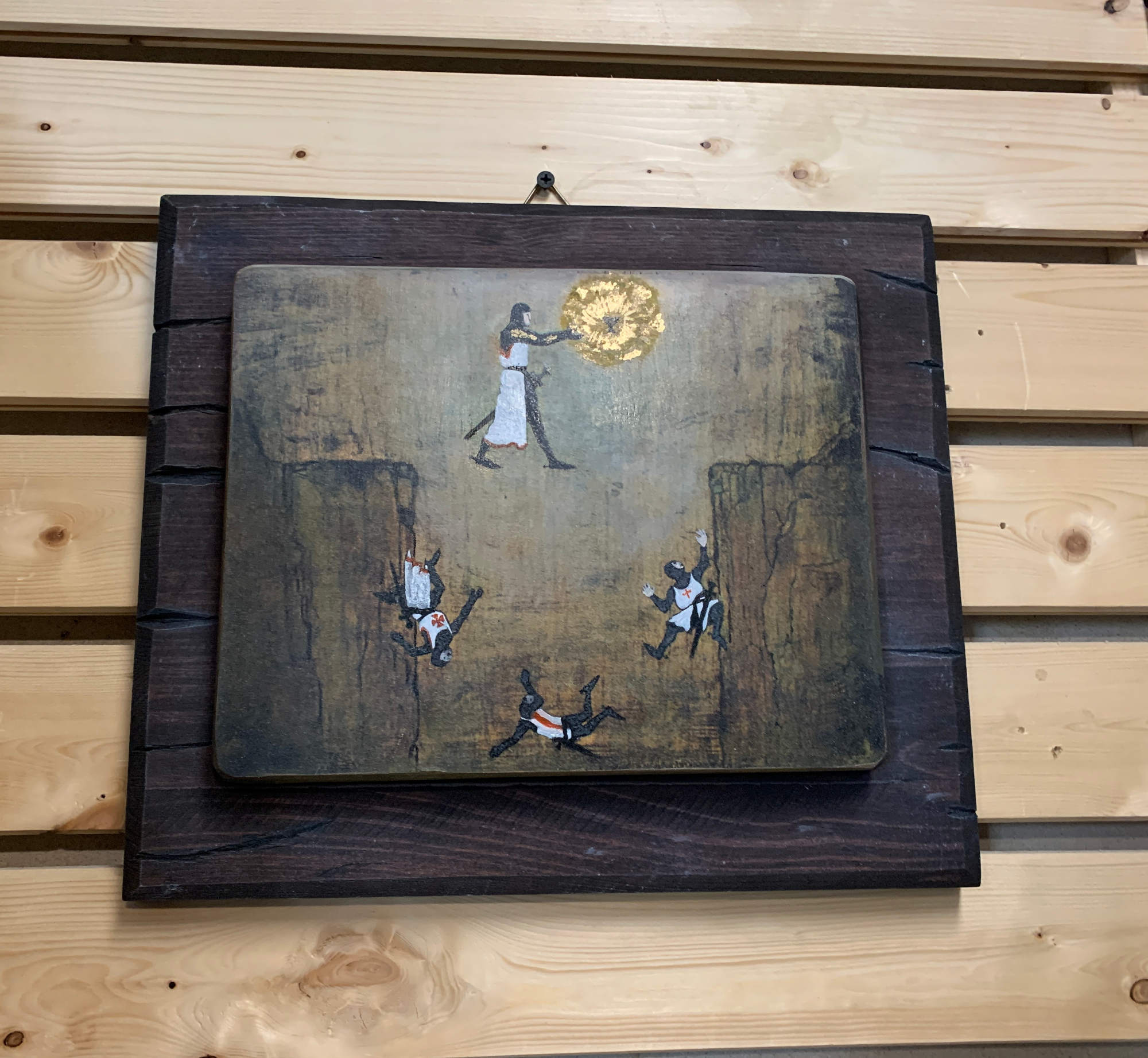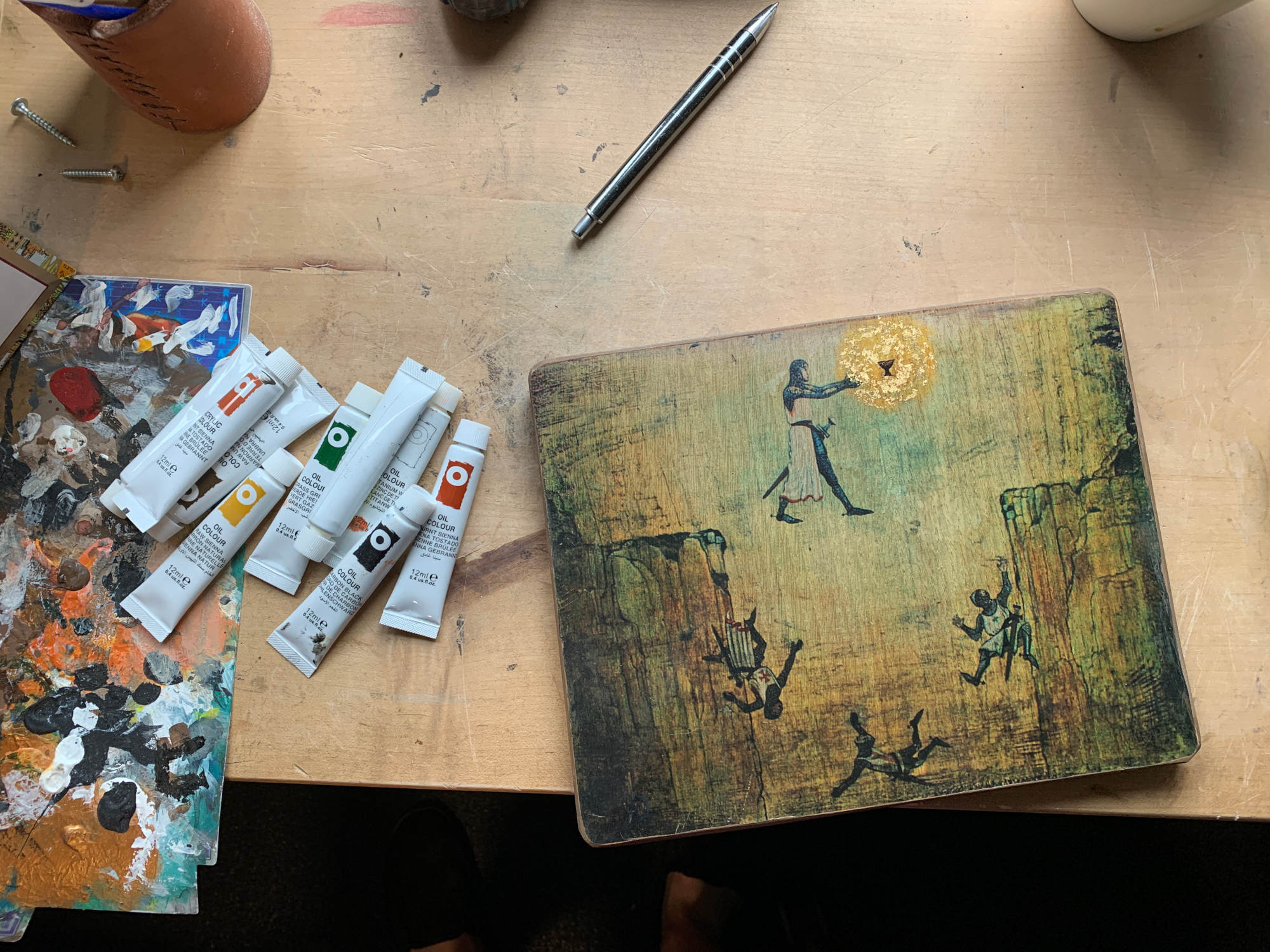 Vor etwas längerer Zeit hatte ich das Bild ja schon mit Wassertransferfolie gemacht. Dieses habe auch als Grundlage genommen und einfach weitergemacht, indem ich mit Ölfarben drübergemalt habe. Es wird zwar ewig dauern bis es trocken ist und es muss dann noch eine Schicht Airbrush drüber um es ein bisschen runterzudimmen und die Farben besser aufeinander abzustimmen, aber auch hier bin ich sehr zufrieden. Die Holzteile dahinter mussten eh neu gemacht werden.
