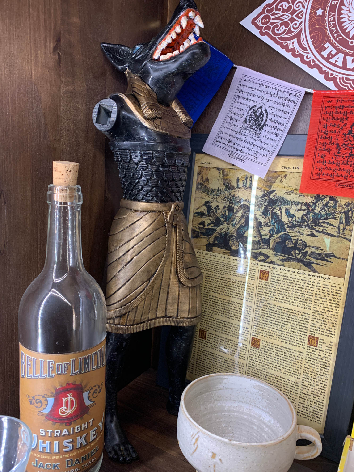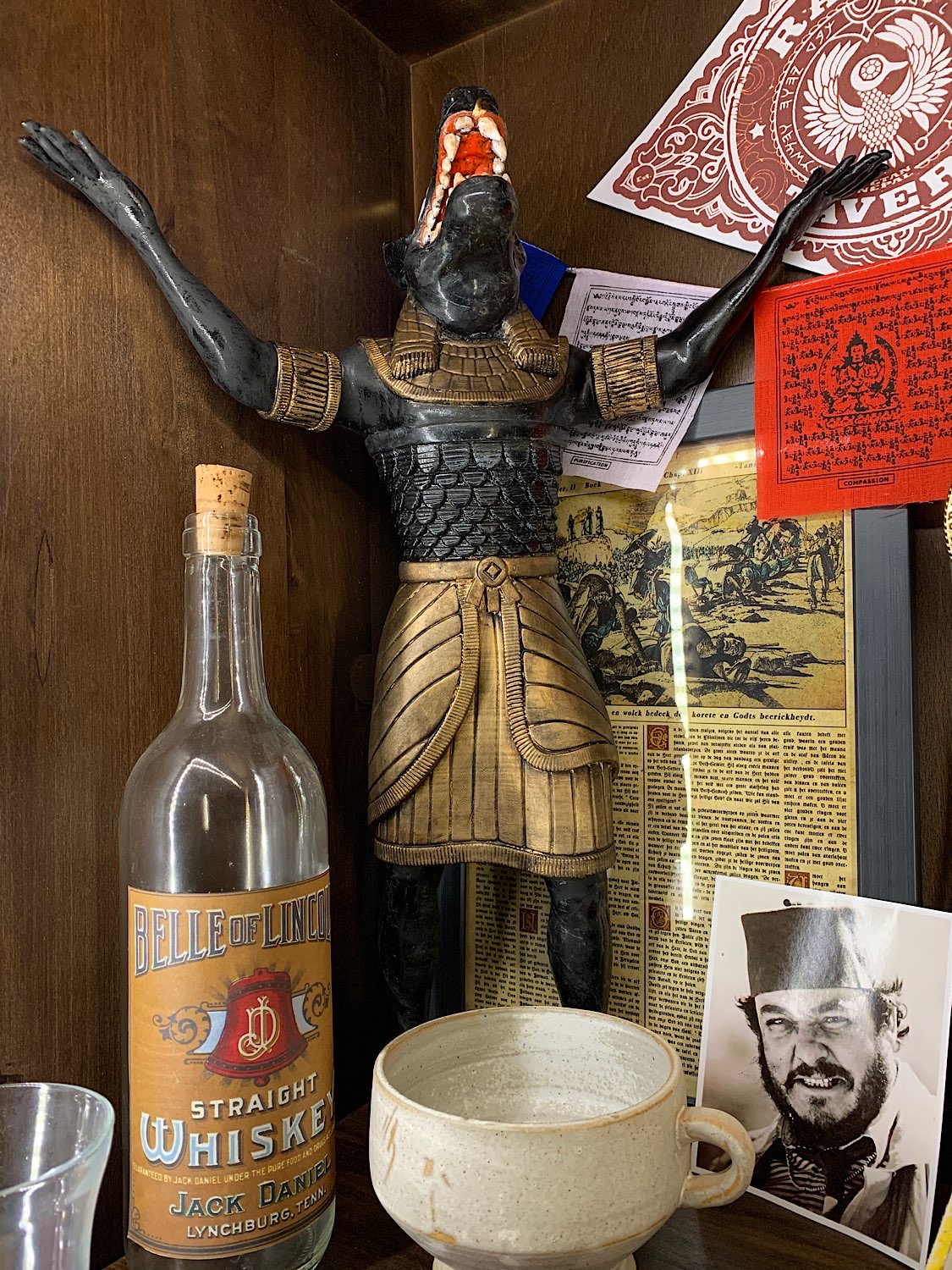 Die Statue ist 45cm hoch, ist lackiert und anschließend mit Öl- und Akrylfarben gealtert.