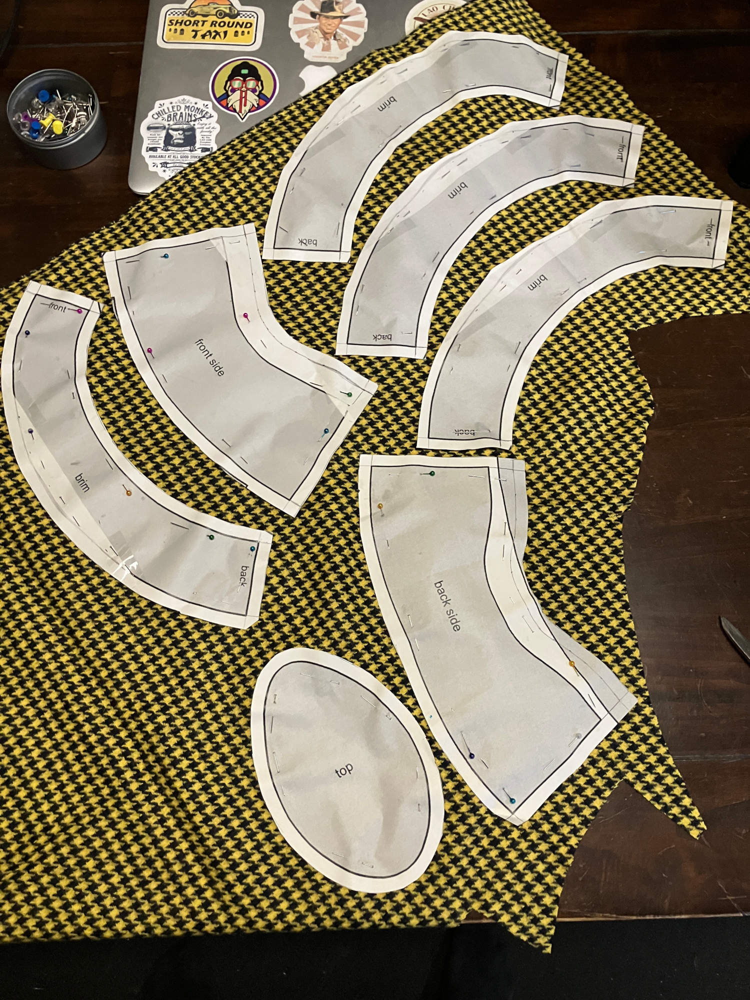 Diesmal das Muster größer ausgeschnitten. Dann einfach zusammengenäht und dunkelbraun gefärbt. Und einen Liner von einem alten Hut hatte ich auch noch rumliegen. Kann man aufsetzen und reicht fürs Display. Ist ganz cool geworden, obwohls doch ein paar Anläufe und Muster gebraucht hat.