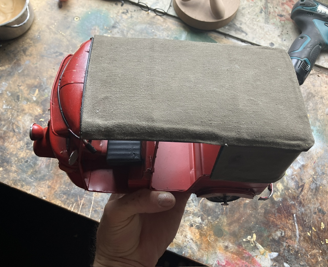 An dem bin ich nicht vorbeigekommen. Ich habe ein Tuc Tuc auf Ebay gefunden. Tolles Teil aus Blech. Habe ich noch den Radkastenschutz abgebaut, es teilweise neu bemalt und eine neues Dach aus Canvas drauf. Macht schon was her auch wenns nicht ganz akkurat ist.
