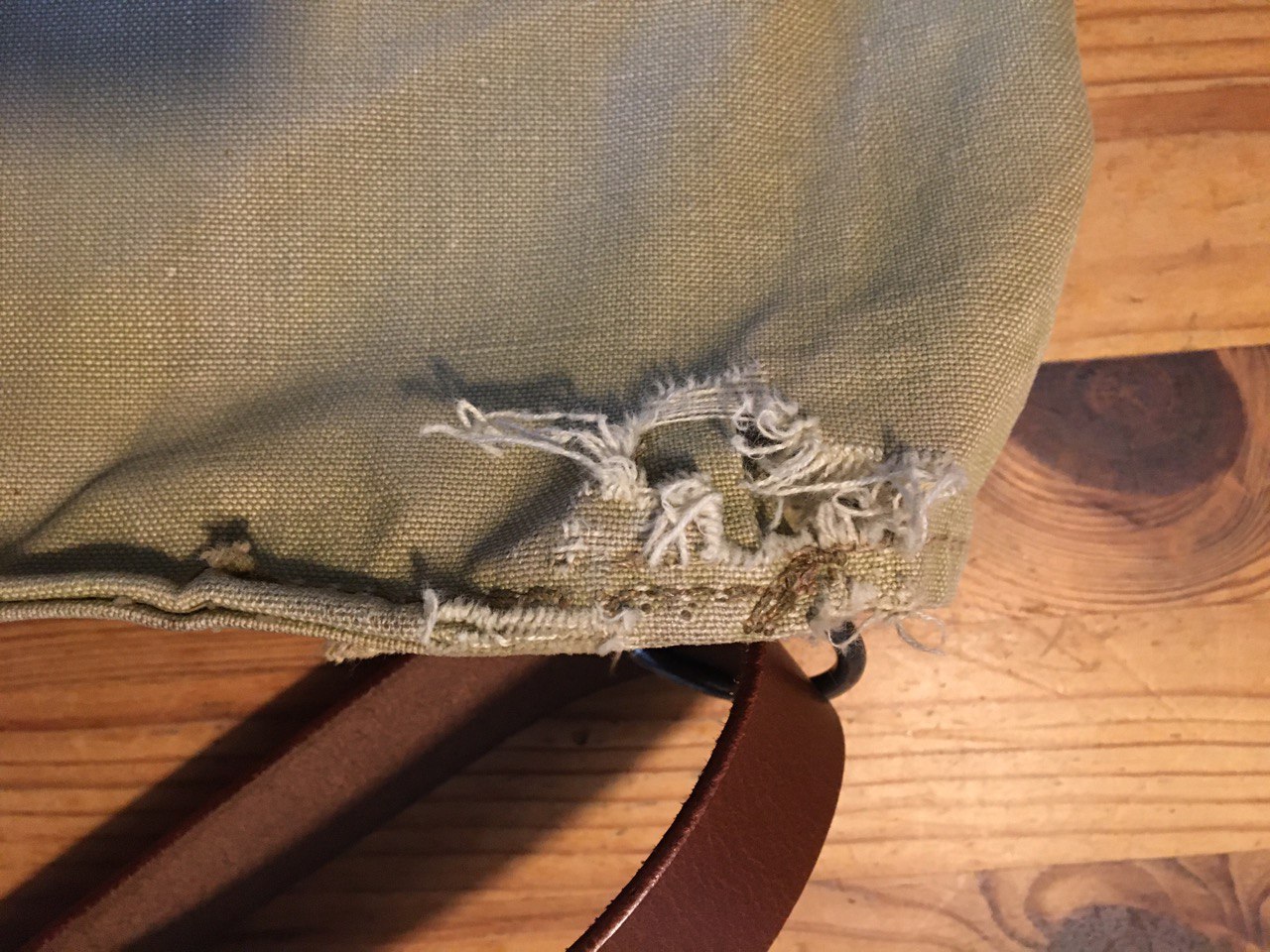 - MK VII Tasche, durchgescheuerte Stelle Rückseite, eine Stoflasche leicht beschädigt. Lässt sich reparieren und hat noch einige Jahre aktive Verwendung vor sich. Dazu neuer Lederriemen (weiß nicht mehr, welcher Hersteller).