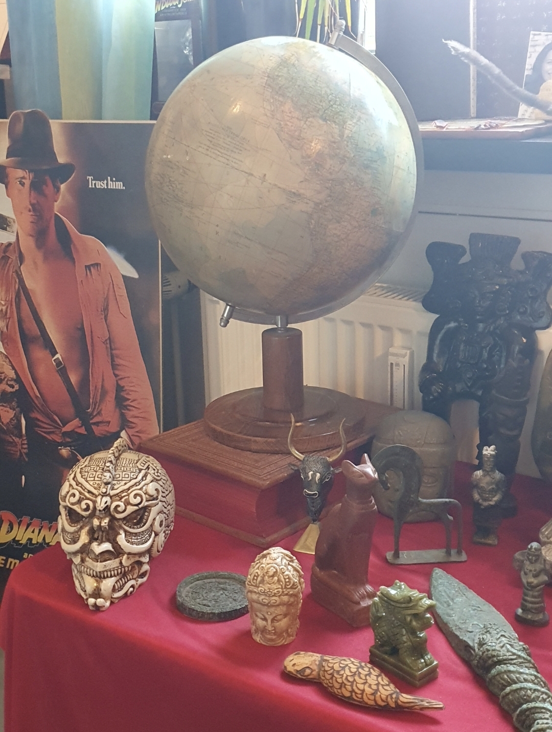 Der College Hörsaal Desk mit Artefakten.