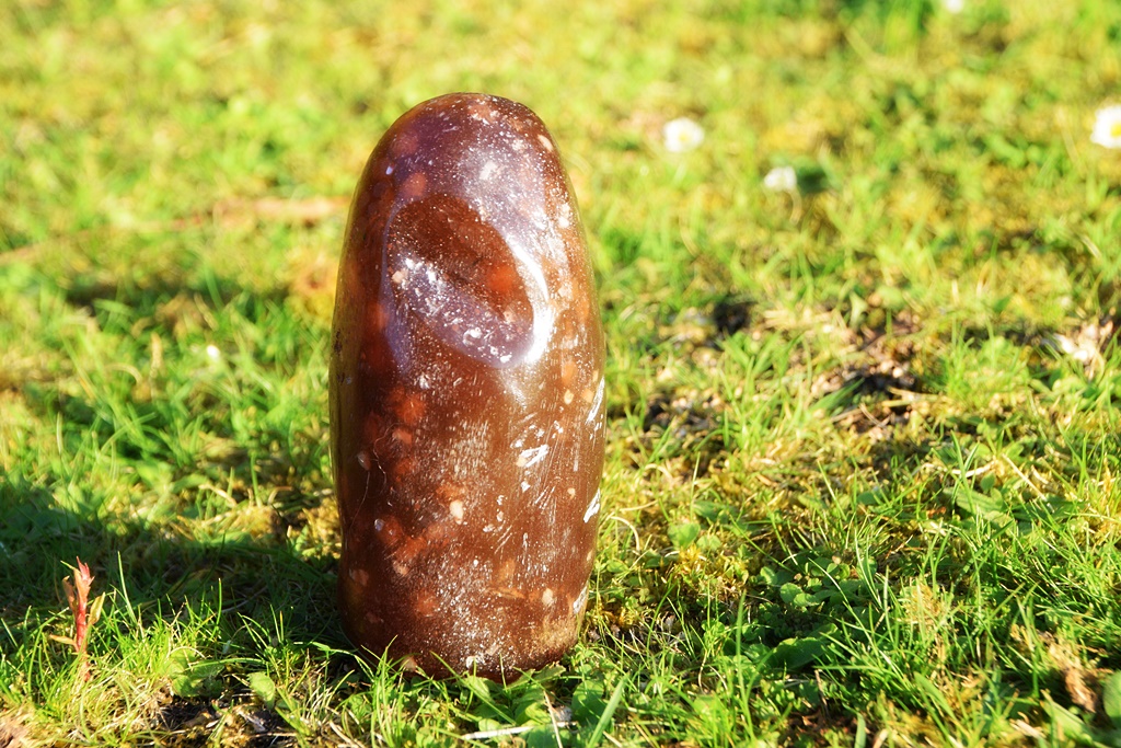 ich kann den neuen, unten abgebildeten Stein anbieten. Die Form ist der Dorfszene nachempfunden. Er ist je nach Beleuchtung braun blickdicht oder eben etwas durchscheinend. Innenleben ist entsprechend vorhanden. Die Fotos zeigen relativ gut das Spektrum.