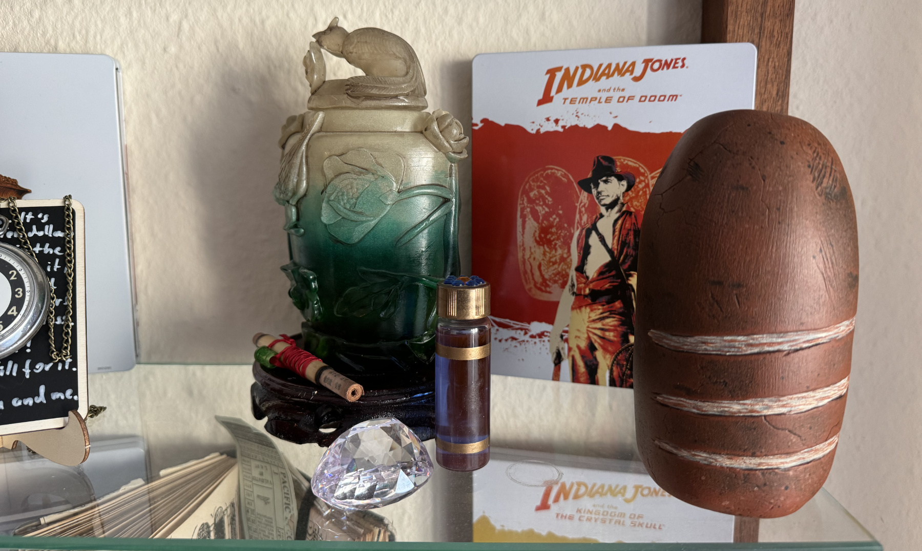 Die Urne ist schön, vor allem perfekt modelliert, leider finde ich sie deutlich zu leicht. Vom Ansehen ist sie gut, etwas zu "geeist" ohne Licht dahinter, mit Licht sehr hell blau/grün durchscheinend. Obwohl Dave das Gegenteil behauptet, sehe ich das Problem in der geringen Wandstärke. Ich denke, mehr Refraktion = matterer Jade Look.