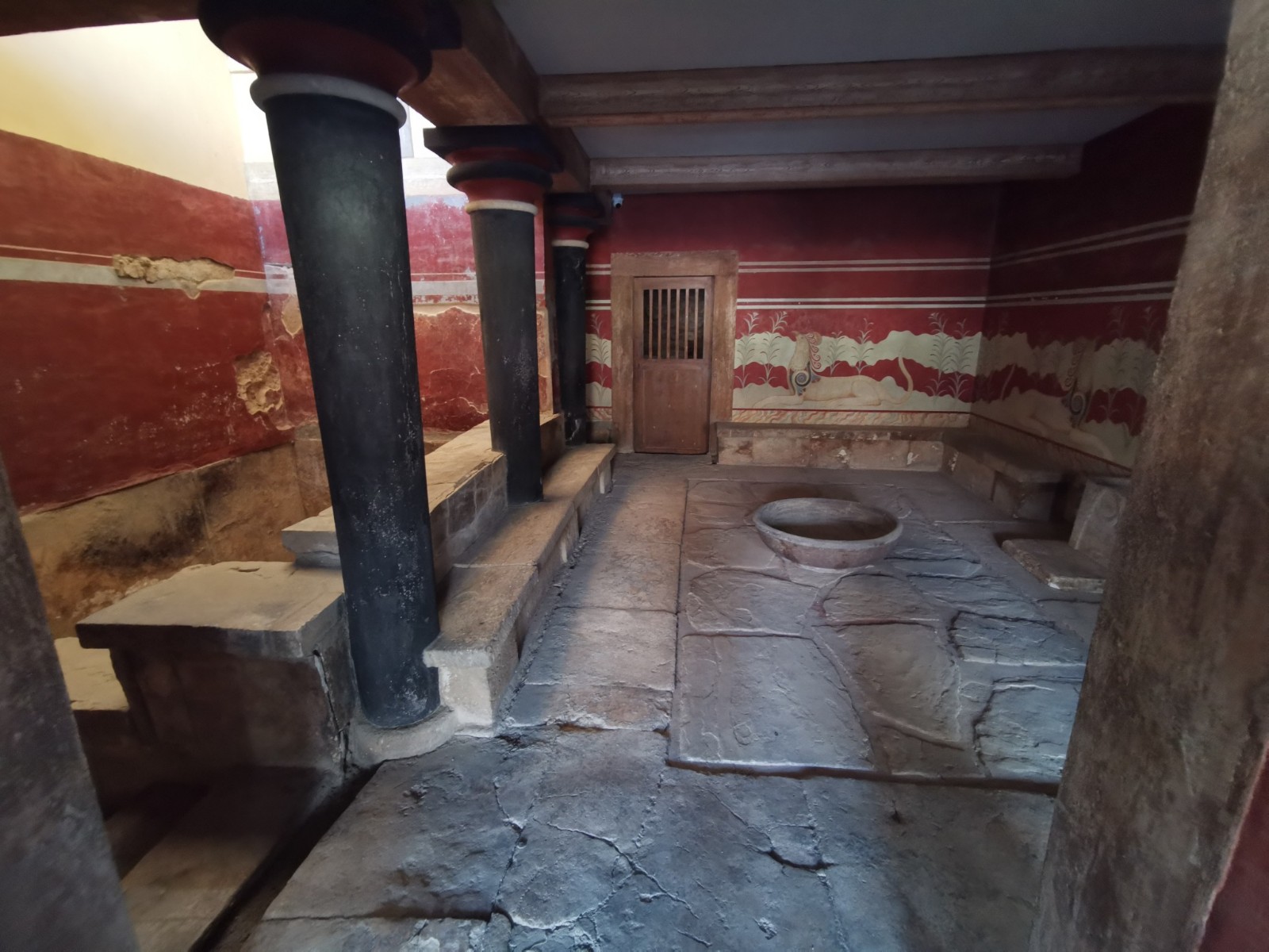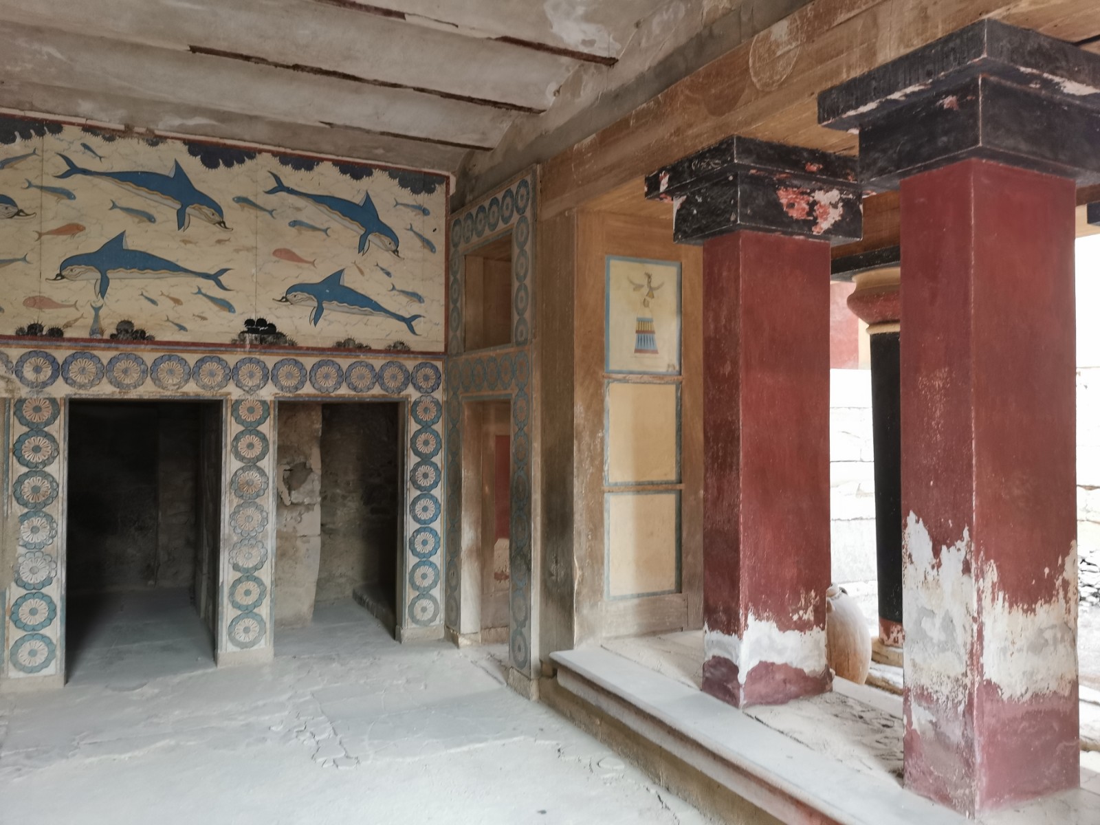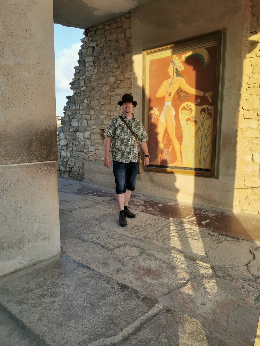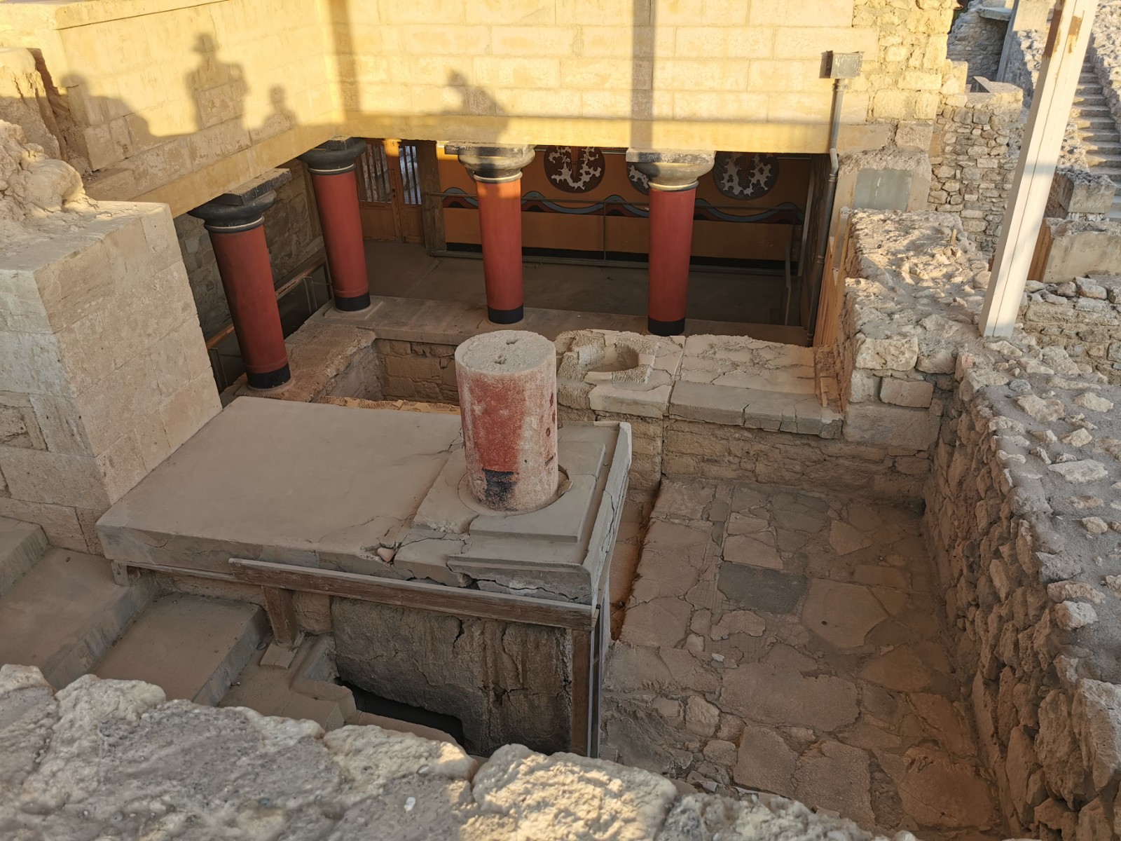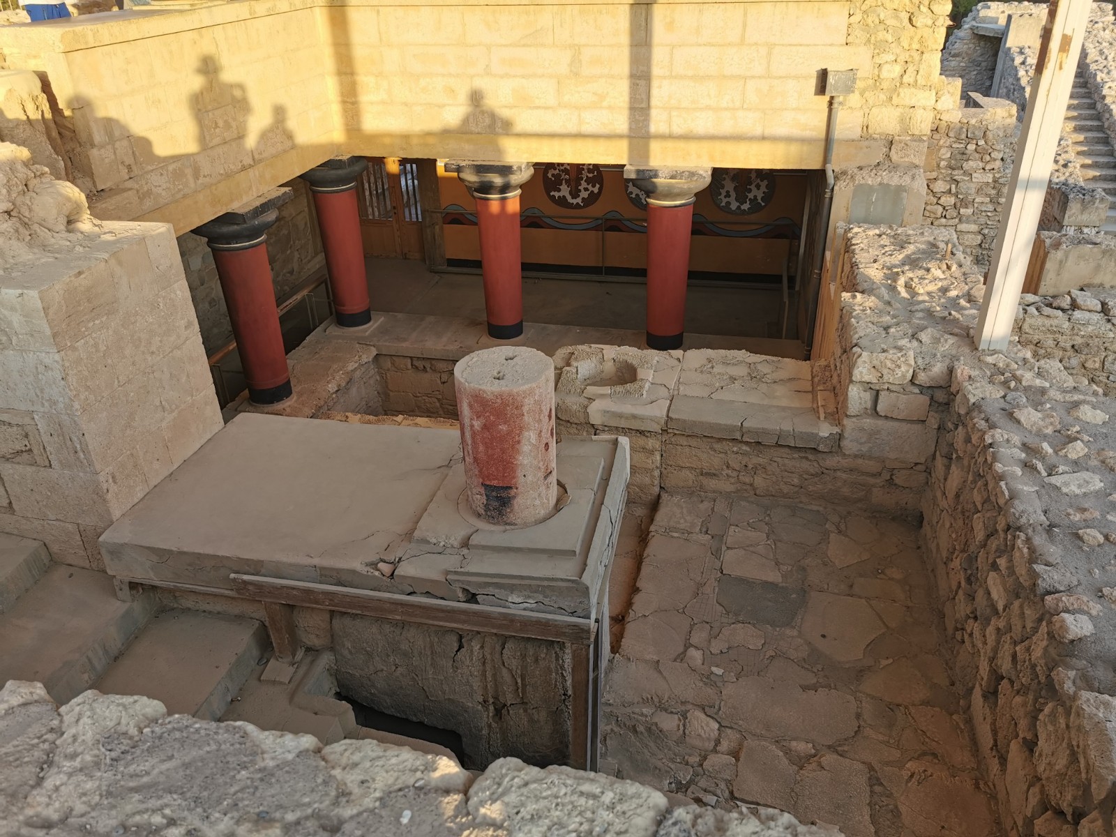 Wir starteten gestern Morgen um 8:30 Uhr. Treffpunkt war der bereits im Winterschlaf befindliche Mc Donalds in Malia. Dort holte uns ein großer, weißer Setra Bus ab. Der Bus war überpünktlich um 8:29 Uhr da und die äußerst kompetente Reiseführerin Eirene von Cretan Odyssey empfing uns in perfektem Deutsch vor dem Bus. Der Bus war zu 50% gefüllt mit deutschsprachigen Urlaubern und als wir eingestiegen waren, da war die Gruppe vollzählig und wir fuhren direkt zur Lasithi Hochebene. Unser erster Stopp war dort hoch oben an einer Taverne am Sattel (Sélla), bei den alten Windmühlen aus dem 15. Jahrhundert, wo weitestgehend nur noch Mauerreste an einem Bergkamm stehen. Weiter fuhren wir in ein altes Kloster auf dem Lasithi Plateau. Dort erfuhren wir die wechselhafte Geschichte und die immer wieder stattgefundene Verteilung des Landes an die Kleinbauern. Venezianer, Osmanen und Deutsche hatten in der Vergangenheit versucht die Lasithen und die orthodoxe Kirche zu beugen. Die Lasithen haben unter anderem das Kloster, wo wir waren, immer wieder aufgebaut und ernähren sich durch fleißiges Beackern der Hochebene und pflegen ihre Kultur. Heute leben in dem Kloster noch 3 Mönche. Das Kloster wurde nach 1945 wieder komplett aufgebaut. Die Lasithen haben nämlich in der Geschichte immer wieder bewaffneten Widerstand geleistet. Im Kloster haben wir das Innere der Klosterkirche bestaunt und einiges über die orthodoxe Liturgie von unserer Reiseleitung erfahren. Nach dem Besuch im Kloster ging es in einen Gutshof wo wir das alte Handwerk des Kerzen machens, Töpferns und zahlreiche Olivenprodukte kosten bzw. bestaunen konnten. Unter anderem gab es dort den Becher der Gerechtigkeit (Pythagoreische Becher) und einfache minoische Salzstreuer. Der Becher der Gerechtigkeit sieht aus wie ein gebrannter Tonkelch, der bei zu viel Flüssigkeit einfach Innen überläuft und die komplette Flüssigkeit durch Sogwirkung entleert. Wohl gemerkt nur wenn man ihn zu voll eingießt. Es soll symbolisieren, dass für jeden genug da ist, wenn man teilt, oder man nichts erhält. Sozusagen das „Wie gewonnen so zerronnen“ bildlich festhält. Meine Frau und ich kauften dort Olivenöle. Danach fuhren wir weiter. Es war bereits 12 Uhr und wir kehrten ein in einer typischen lasithischen Taverne am Wegesrand. Die typische lasithische Küche sind Schmorgerichte aus Pfanne und Topf. Also aßen wir was die Küche bereithielt. Geschmortes gefülltes Gemüse mit Kartoffeln und Bohneneintopf. Es gab natürlich auch Moussaka und geschmortes Hähnchen und Schweinebraten. Dazu hellenisches Fix Bier oder Softgetränke. Gegen 13 Uhr fuhren wir weiter und besuchten einen Friedhof auf einem Dorf und die älteste Platane des Hochplateaus. Der Baum ist bereits 2000 Jahre alt. Nun brachen wir auf und verließen wieder das Hochplateau in Richtung Hauptstadt Heraklion. Unser Ziel war nun die alte minoische Hauptstadt Knossos. Sie liegt vom alten Hafen aus (heute der Flughafen Heraklion) in gerader Verbindung über die Knossosstraße im Landesinneren. Knossos beherbergte zu minoischer Zeit den Minos (König von Kreta). Wobei die Könige und Königinnen gemeinsam herrschten und der Palast eben in Knossos war. Die Wiege der kretischen Zivilisation. Knossos hatte nie Stadtmauern. Es war immer auf den Handel mit anderen Völkern wie den Persern oder Ägyptern bedacht. Es wurden Olivenöl und zum Beispiel Gold miteinander gehandelt. Kreta war schon damals durch seine Lage im Mittelmeer als zentraler Warenumschlagsplatz von immenser Bedeutung. Bereits früh etablierte sich dort die Theokratie. Dem wohlhabenden kretischen Kaufmann, Juristen und Hobby-Archäologen Minos Kalokairinos gelang 1878 die Entdeckung Knossos'. Arthur Evans gilt als Entdecker der minoischen Kultur. Bekannt wurde er vor allem durch die Ausgrabung und Erforschung des minoischen Palastes von Knossos zu Beginn des 20. Jahrhunderts. Der Brite Evans war Kaufmann und kaufte dort Land und grub mit erheblichem Aufwand und zahlreichen Archäologen den Palast von Knossos wieder aus. Wobei er nur die Kirsche auf der Torte ausgrub. Bis heute sind etwa erst 45% der alten Stadt Knossos ausgegraben. Die Stadt erstreckte sich nämlich bis zu dem benachbarten Fluss und den umliegenden Hügeln. Vorort waren wir gegen 15 Uhr. Dadurch waren wir fast alleine in der archäologischen Ausgrabungsstätte unterwegs. Der Eintritt im Winter ab dem 1. November beträgt diese Saison noch 8 Euro pro Erwachsenen. Kinder aus der EU sind frei. Heinrich Schliemann wurde auch die Ausgrabung von Knossos angeboten, doch er bot damals zu wenig und war sich nicht sicher genug, dass er dort etwas finden würde. Evans hingegen hat nicht nur ausgegraben sondern leider auch mit Beton wieder einzelne Teile des Gebäudekomplexes nach den damaligen Vorstellungen um 1900 wieder rekonstruiert. Da wurden zum Beispiel Säulen aus Holz einfach aus Beton nachgebildet. Der alte Palast war nämlich teilweise vierstöckig und mit viel Holz aufgebaut. Es gab schon damals Fußbodenheizungen und die Abfälle wurden in Gruben entsorgt. Es gab zu minoischer Zeit schon Latrinen, Badewannen und Weinkeltern und der Palast von Knossos verfügte über Herrschaftsräume für König und Königin. Gefundener kostbarer Schmuck und Kämme aber auch Wandreliefe zeugen von einer großen Kultur. Der Palast ist in der langen Geschichte auch schon abgebrannt und Erdbeben zum Opfer gefallen, was Risse und Ruß belegen. Es gibt einen Thronsaal und einen Raum mit 🐬🐬 als Wandbemalung, die die Könige des Meeres symbolisieren. Außerdem gab es einen Innenhof, der für das jährliche Fest des Stieres, nicht vergleichbar mit Stierkämpfen in Spanien, genutzt wurde. Man fand dort auch einen kunstvoll verzierten Stierkopf der für Rituale Flüssigkeiten ausgoss, der heute im Archäologischen Museum von Heraklion ausgestellt ist. Wir machten vor Ort zahlreiche Fotos. Hatte auch das Buch Geheimakte Tartarus von André Milewski dabei, dass Knossos u