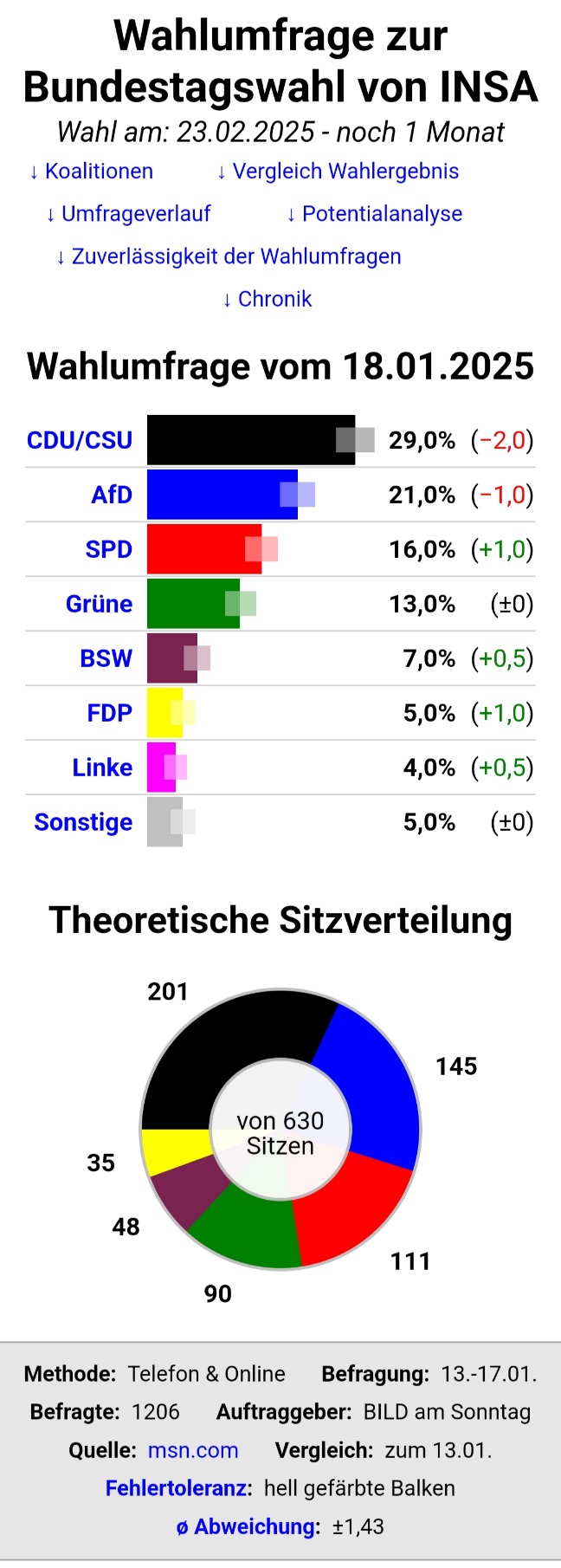 Derzeit reicht es mit der Brandmauer übrigens nicht mal für eine schwarz geführte Zweier-Koalition.