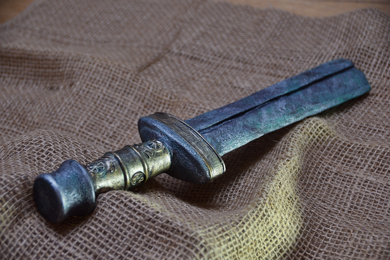 ich kann das unten abgebildete Xiphos Artefakt (wie griechisches Kurzschwert) anbieten. Man kann so ein Artefakt zum Beispiel im neuesten Game im Vatikan aufspüren.