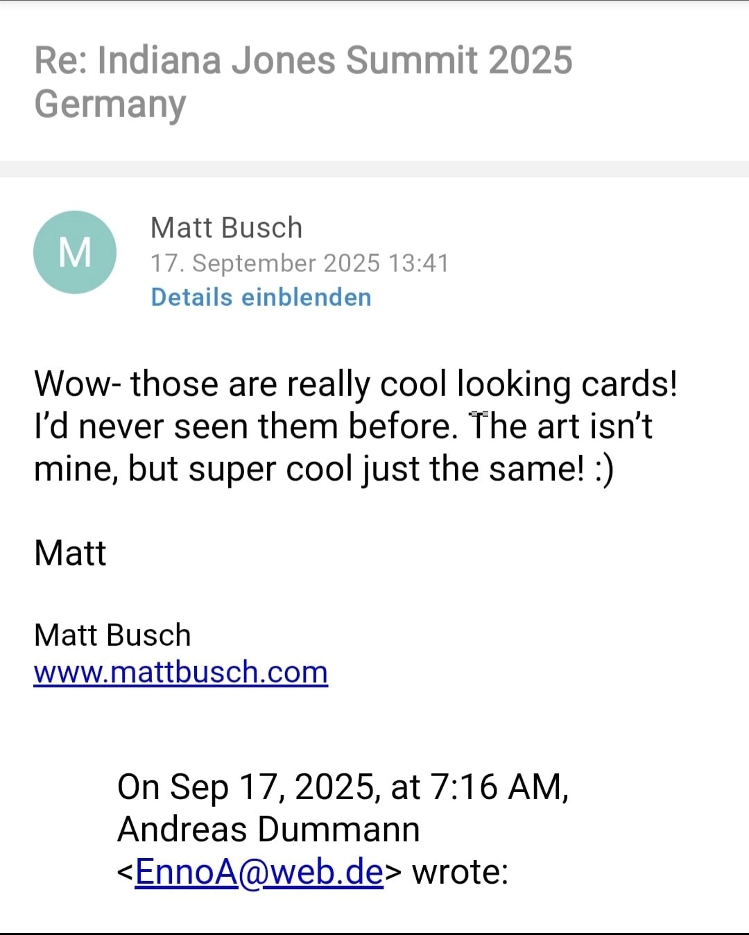 Als das hier heute mit den Karten im Forum aufkam habe ich gedacht ich schreibe ihm wieder und frage mal nach.