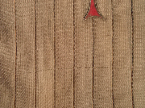 Ob´s Schweiss war, weiss ich nicht, aber Flecken hatte sie im Innenfutter und dazu noch diverse kleine Schäden, wie das Loch an der Schulter (zu sehen in Beitrag 20) oder diese 'Laufmasche' hier. Deswegen glaube ich schon, dass es einer der tatsächlich getragenen Umhänge war - wohlgemerkt einer davon, ich denke mal, dass es nicht nur noch mindestens eine gab, sondern wahrscheinlich eine ganze Handvoll.