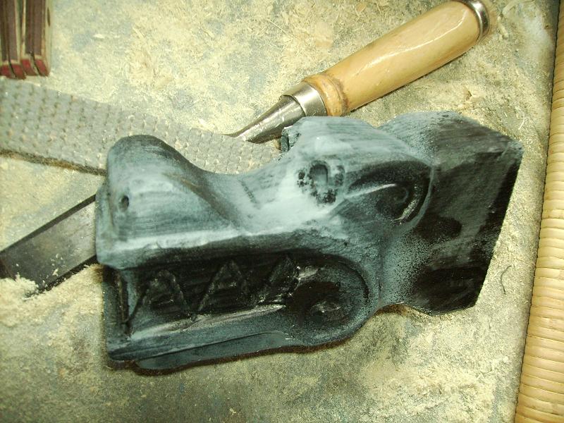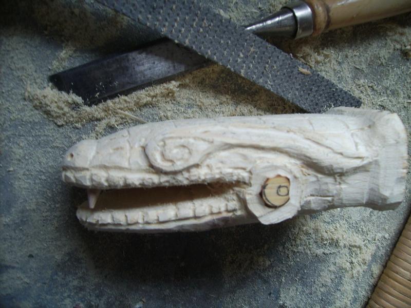 das erste bild zeigt ein "keine ahnung". dieses "keine ahnung" entstand in anlehnung an den sockel des kristalschädels aus der KOTCS dvd edition mit dem minimodel des kristalsschädels. das zweite bild zeigt einen schlangenkopf, den ich in anlehnung einer gefiederten schlange geschnitzt habe.