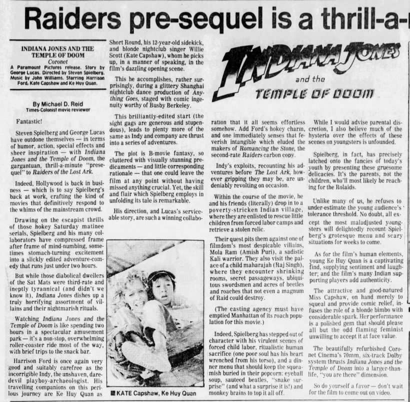 Betreff: Re: Übersetzte Zeitungsschnipsel zu den Indiana Jones Filmen Habe einen weiteren Presseartikel über Indiana Jones und der Tempel des Todes vom 21.05.1984 komplett übersetzt. |