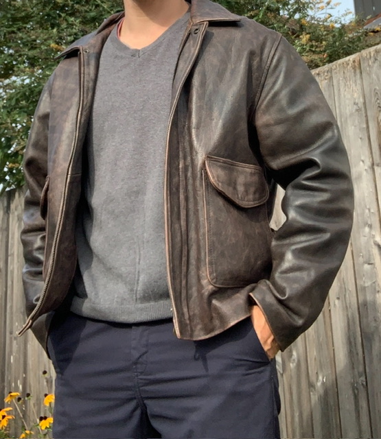 Betreff: Re: Indy Jacke und Tasche Du meinst den hier. Das ist meine Last Crusade Jacke aus Lammleder. Die Alterung sollte auf Rindsleder aber schon auch so aussehen, da die Jungs das Leder auf jeden Fall in der gleichen Farbe bekommen. Das Leder der Last Crusade Jacke ist auch dickeres Lammleder, was dann auch wieder näher ans Rindsleder kommt. Beim Tragen ist es halt ein Unterschied, da es weicher und leichter ist. |