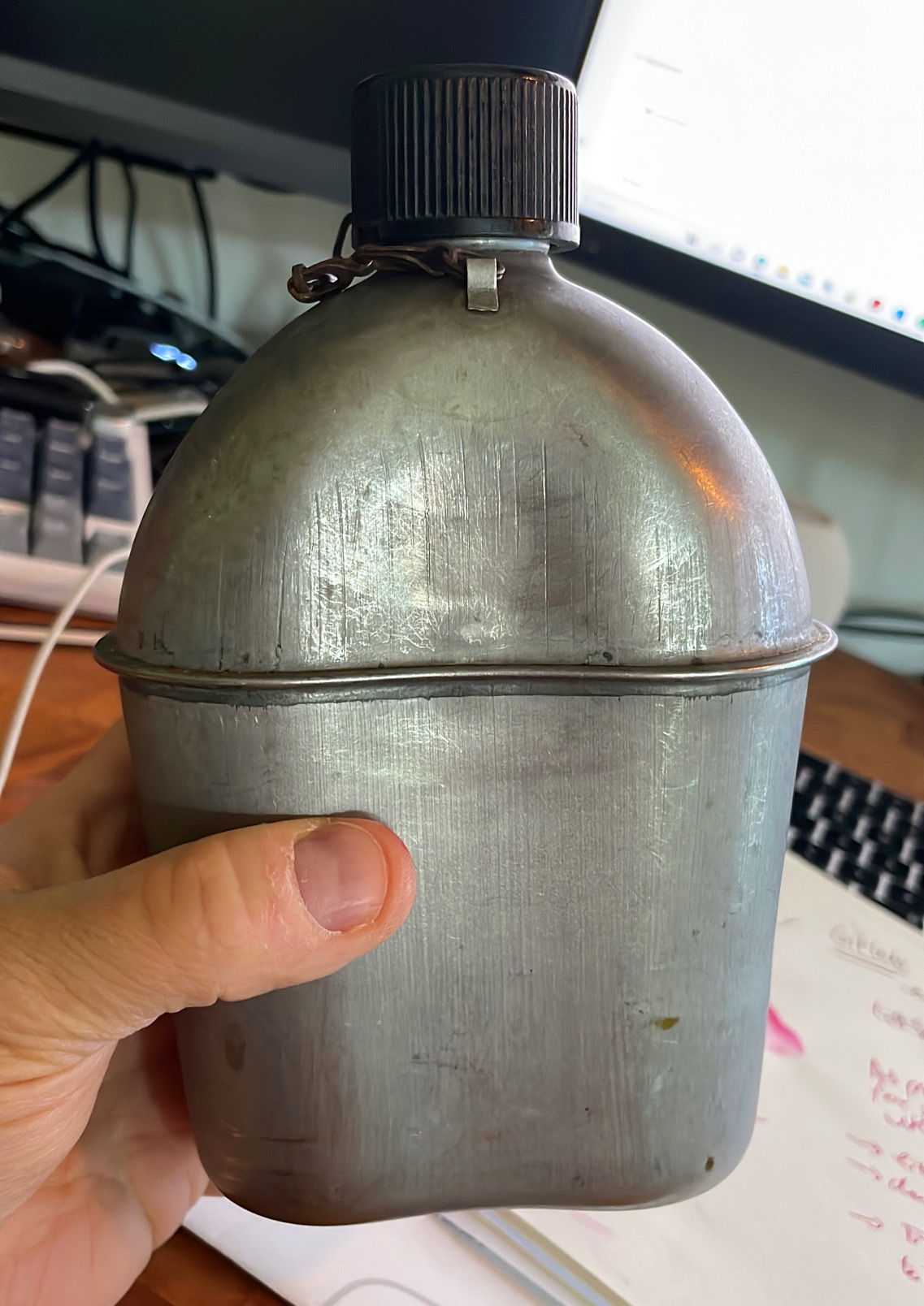 Betreff: The Great Circle - Indy‘s Wasserflasche Am Anfang im Intro genehmigt sich Indy mehrmals einen Schluck aus seiner Wasserflasche. Auch im Spiel selber liegen mal immer wieder welche herum. Es handelt sich hier um die M-1942 canteen der U.S. Army aus Aluminium. Siehe im Anhang Bilder aus dem Spiel zum Vergleich mit den Bildern meiner Flasche. Die gab es in mehreren Versionen aber alle erst eigentlich ab den 1940ern. Also eine ähnliche Art Continuity-Fehler wie die Mark VII Tasche, die es ja auch eigentlich erst ab 1942 gab. Meine Flasche ist von S.M. Co. (Steel Metal Company) von 1944 |