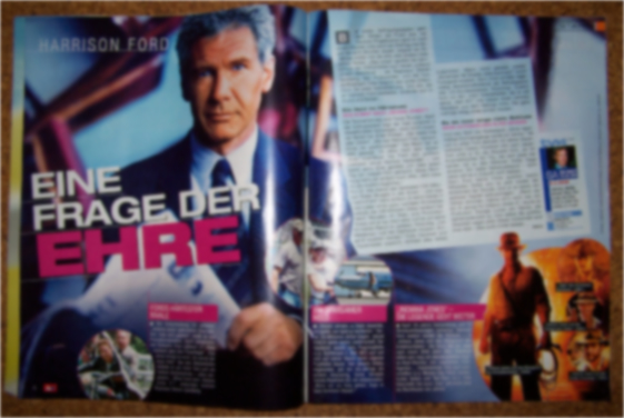 Betreff: Re: Indy-Zeitungsausschnitt In der 3. diesjährigen Ausgabe der Fernsehzeitung tv14 (26.01.2008-08.02.2008) ist in der Kategorie TV-Aktuell/Stars auf Seite 6 und 7 ein Artikel über Harrison Ford und sein aktuelles Filmprojekt veröffentlicht worden... HARRISON FORD EINE FRAGE DER EHRE FORDS HÄRTESTER RIVALE Die Entscheidung ist gefallen: "Indiana Jones geht weiter! Zwei weitere Teile sind geplant", heißt es aus Produktionskreisen. Doch ausgerechnet Filmsohn Shia LaBeouf (21,Foto) markiert jetzt den Thronfolger: "Opa Jones bringt es nicht: Ich werde der neue Indy!" Bei den Dreharbeiten bettelte er um mehr Text und um härtere Actionszenen - alles vergebens. "Ohne Ford kein Indiana Jones 5'!", entschied kürzlich Regisseur Steven Spielberg. EIN SPARSAMER HELD "Oscars werden zu hoch bewertet" ich spiele, um Geld zu verdienen. "Seine 25-Millionen- Gage steckt Ford in seine wahre Leidenschaft: Der Sportpilot besitzt eine Flugzeugflotte (u.a. Golfstream II , Bell 407) und will sich auf seiner Ranch einen eigenen Flughafen bauen. Von diesem Hobby abgesehen, gilt der 65-Jährige als extrem knauserig. Seine Verlobte Calista Flockhart (43, ein Adoptivsohn): "Wenn wir ins Kino gehen, fragt er nach Senioren-Rabatt!". "INDIANA JONES" - DIE LEGENDE GEHT WEITER Nach 19 Jahren Vorbereitung und 75 Drehbuchfassungen schwingt Harrison Ford endlich wieder die Peitsche - in "Indiana Jones und das Königreich des Kristallschädels". Die Story: Bei der Jagd nach einem 3000 Jahre alten Totenkopf liefert sich Indy ein abenteuerliches Kopf-an-Kopf-Rennen mit russischen KGB-Agenten... Faszinierende Orte und Landschaften (u.a. Mexico City, Peru), spektakuläre Action und Top-Stars (u.a. Cate Blanchett): Der neue "Indy" gilt schon jetzt als Blockbuster des Jahres! Bei wilden Verfolgungsjagden geht dem Helden die Puste aus, bei Routine-Prügelszenen japst er nach einem Double. Und wenn ein Drehtag mal länger als acht Stunden dauert, vergisst der 65 Jährige schon mal die eine oder andere Zeile seines Textes. "Opa Jones" spotten sie heimlich bei den Dreharbeiten zum neuen "_Indiana Jones" - Abenteuer - bei Regisseur Steven Spielberg, den Produzenten, und der hundertköpfigen Crew beginnt das große Zittern. Dann die erste Testvorführung. Und alle, die an Harrison Ford zweifelten, schämen sich in Grund und Boden... Ein Held im Härtetest WAS KOMMT NACH "INDIANA JONES"? Die Testvorführung wird Fords Triumph. Nach der Schlussszene liegt der Saal zunächst in respektvollem Schweigen, dann bricht tosender Beifall los. Erste Kritiken: "Der beste Indy aller Zeiten!" und "Nie war Harrison Ford menschlicher, nie glaubwürdiger." Der Mann hat es allen gezeigt: 19 Jahre nach dem letzten "Indy"- Abenteuer hat Ford den größten Härtetest seiner Karriere bestanden - und damit seine Ehre gerettet: "Ich habe jeden Tag von diesem Film geträumt. Diese Rechnung hatte ich einfach noch offen. Jetzt habe ich sie endlich beglichen." Am 22. Mai startet das Spektakel (150 Millionen Dollar Budget) in den Kinos - und was macht Ford? Ganz einfach: Er kehrt wieder in das Leben eines ganz normalen Kinohelden zurück, der 300 Millionen Dollar verdient hat. Nach Monaten im Dreh- und Promotion-Stress will er nur noch eins: zurück auf seine 40-Hektar-Ranch in Jackson, Wyoming. "Der Weidezaun und der Dachstuhl müssen dringend repariert werden." Ford, Hausherr und Hausmeister zugleich, zimmert alles selbst zusammen. Wenn nicht gerade wieder "November 36 Charlie, bitte kommen!" durchs Funkgerät knattert: Denn Ford schiebt regelmäßig Bereitschaftsdienst als Rettungspilot des US-Bundesstaates Wyoming. Zuletzt kurz vor den "indy"-Dreharbeiten, als er mit seiner "Bell 407" mal wieder einen verirrten Wanderer aus dem Bebirge holte. Der ganz normale Alltag eines echten Helden. Es ist noch lange nicht Schluss WENN ACTIONHELDEN ÄLTER WERDEN Und kein Wort von Ruhestand: Ohne regelmäßige Kontoeingänge werde ich nervös." Ab und zu jettet Ford deshalb mit seiner Dauerverlobten Calista Flockhart (43) nach Japan: Dort wirbt er für die Brauerei Kirin, sie für Kosmetiktücher. Ein Trip, bei dem jeder der beiden bis zu drei Millionen Dollar Gage absahnt. Ein netter Nebenverdienst - doch dabei soll es in Zukunft nicht bleiben... Denn Ford (seine spielten sechs Milliarden Dollar ein) ist jetzt wieder der Actionheld der Stunde. Und er ist bereit, ein weiteres Kapitel aufzuschlagen: "Wenn die Zahlen stimmen, mache ich's noch mal. Ich bin fit genug für Indiana Jones 5", raunte er Produzent George Lucas am Rande der Geheimpremiere zu. Und selbst die größten Skeptiker sagen jetzt: Dieser Actionheld wird zwar älter - aber auch immer besser... KMCK |