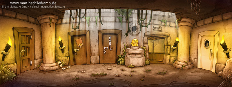 Betreff: Re: Videospiele und Filme... in denen Indyjokes vorkommen Die Besucher des Kölner Stammtisches wissen, es juckt mich schon länger - jetzt habe ich ein offizielles Release-Date und kann's posten: Am 30.03. erscheint für Nintendo DS Spooky Story, ein feines kleines Oldschool Adventure. Ich habe Hintergrundgrafiken, Characterdesign und die Coverillustration beigesteuert. Und, da im Produktionsjahr Indyjahr war, ein paar Anspielungen auf unseren Lieblingshelden eingebaut. Hier sind drei von den Hintergrundbildern - guckt mal, was ihr so findet. |