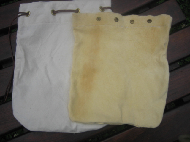 Betreff: Re: MurdocXXLs Props Und hier mal im Vergleich, mit meinen aus einem Fensterleder, selbst hergestellter "Sandbag". Des dünne Leder verhält sich beim nähen mit der Maschine echt gemein. Also bitte nicht über die schlechten Nähte beschweren ![]() Das eine Stück Fensterleder hat von der Höhe nicht ganz gereicht. Deshalb ist der Beutel etwas kürzer. Fällt aber, ohne direkten Vergleich nicht weiter auf. Auch hier muss noch etwas Dreck an den Beutel |