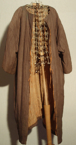 Betreff: Re: Voll die Kutte, ey! Nee, das ist ein Teil vom Originalkostüm, das Robert Eddison als Gralsritter in Crusade trägt. Allerdings die Rückseite - man schlüpft von hinten rein, und die Bändel werden dann auf dem Rücken zugebunden. Ich wollt´s eigentlich als Morgenmantel tragen, aber weil´s eben andersherum geschnitten ist, rutscht einem der Kragen ziemlich zwischen die Schulterblätter runter. Ist aber auch besser so, will gar nicht wissen, wie das gute Stück sonst jetzt nach knapp neuen Jahren bei mir aussehen würde. Von vorn erkennt man´s sofort: |