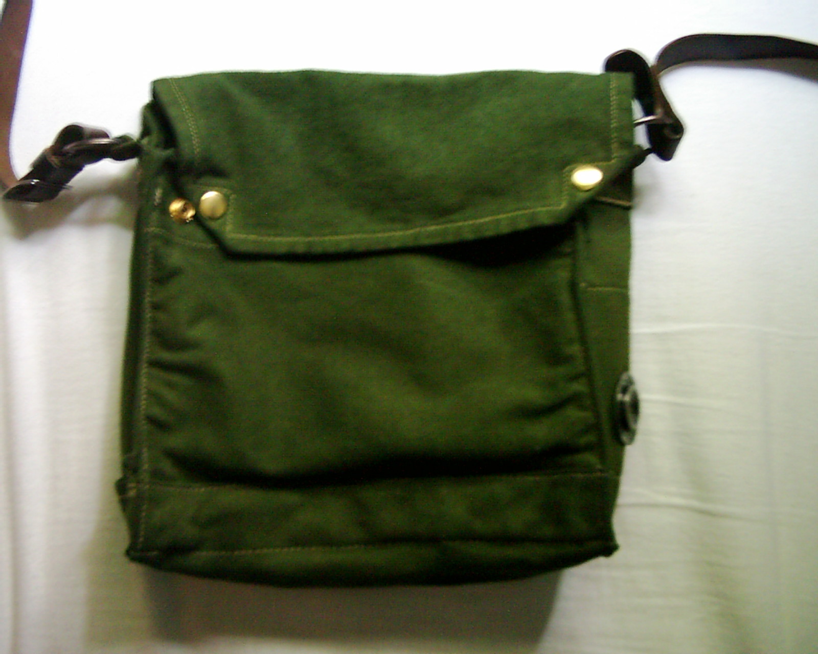 ...habe ich es mit der Waschmaschine gemacht: 1 x 30°C vorgewaschen um Rückstände zu entfernen. 1 x 40°C mit der Hälfte der Packung des Färbemittels Dylon + 1 Päckchen normales Salz und dann nochmal bei 40°C ausgewaschen anschließend luftgetrocknet. Wie man sieht hätte auch ein Teelöffel der Farbe gereicht. Die Tasche ist dunkel Oliv-Grün geworden. Mal sehen, ob ich sie noch mit Bleiche bearbeite, meine werte Frau Mutter meinte aber, dass es dann verschmieren/verlaufen könnte. Das Magnoli Etikett wird übrigens nicht in Mitleidenschaft gezogen, da es aus Kunstfasern besteht. |