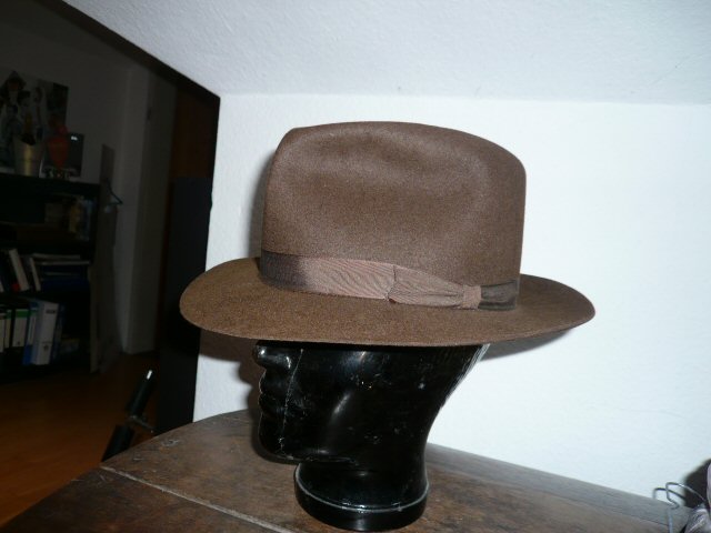 Betreff: Dachbodenfund Hi Freunde. Ich war am letzten WE in der alten Heimat in meinem Elternhaus und hab nach Klamotten für ebay gesucht. Und was finde ich da? Den Hut meines Urgroßvaters aus den 30er Jahren. Ganz schön verknautscht und dreckig war er.. aber nach einer Behandlung meinerseits sieht er nun so aus. Leider ist er mir zu klein (55cm) - aber fühlt sich vom Material her großartig an. Bevor er hier vergammelt geb ich ihn jetzt meiner Freundin.. der steht ihr wunderbar |