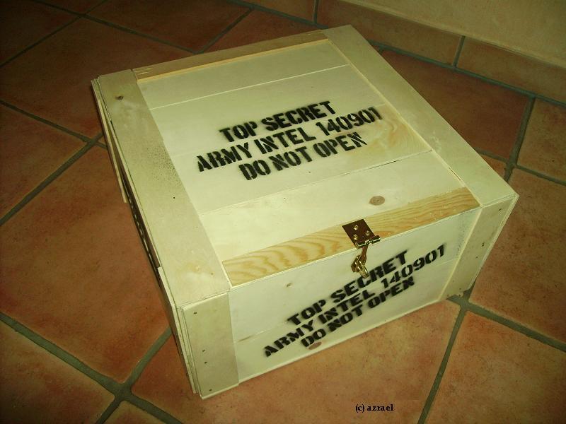 Betreff: selbstgebaute hutschachtel ich war heute im baumarkt mir sprühfarbe besorgen für meinen LC panzer. ich schlenderte noch etwas herum und sah mir tapeten an. dort sah ich eine die eine holzwand darstellte. da kam mir eine idee. ich war ja schon lange auf der suche nach einer hutschachtel und hatte irgendwann hier im forum mal erwähnt das ich mir eine hutschachtel gut vorstellen könnte die außen so bedruckt ist wie eine der kisten aus area 51. also so eine kiste in der sich die bundeslade befindet. ich überlegte ob ich mir nen karton besorge den ich dann mit dieser tapete beklebe. ich schlenderte weiter und kam in die holzabteilung. dort sah ich holzleisten und da dachte ich mir, warum nicht eine hutKISTE bauen. sie ist langlebiger, stabieler und sieht noch bessr aus als ein beklebter karton. erst dachte ich an balsaholz. ber dieses war mir erstens zu teuer und zweitens nicht stabiel genug. dann kam ich auf die idee sperholz zu nemen welches ich zu 10 cm breiten brettern sägen kann. schnell den henry abgenommen und über den daumen maß genommen. zwei sperholzplatten ausgesucht mit einer schönen maserung und mitgenommen. fast hätte ich vor aufregung die sprühdose für den panzer an der kasse vergessen. zugesägt habe ich die bretter schon. die kiste wird später in etwa die maße haben: b/t/h 40x40x20 muss mir nun noch überlegen was ich später dort aufsprühe... top secret don't open... fotos folgen |