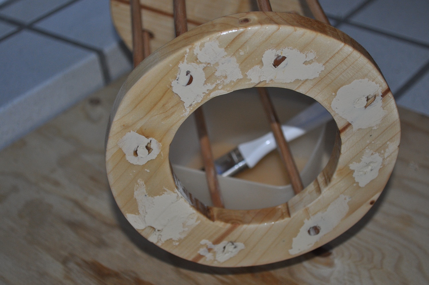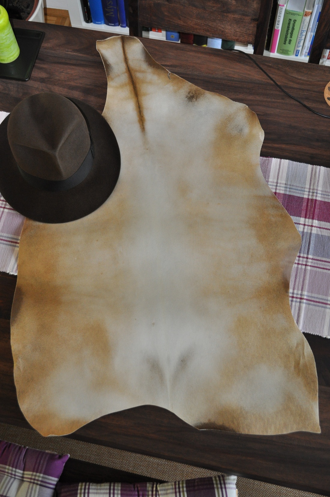 Betreff: Re: Kaindee`s Bastelthread: "Visby-Laterne" Sodala, weiter geht´s ! Heute ist gekommen: - Stechahle - Nieten - ROHHAUT Jetzt habe ich mal die Laterne oben sehr "wild" abgespachtelt mit dem Flüssigholz, funktioniert super, und muss jetzt aushärten. Sieht noch nicht wirklich schön aus, aber ich denke nachdem ich es geschliffen und mit der Lasur mehrmals eingelassen habe wird´s schon werden (sonst muss ich wirklich neu anfangen - und dann aber sicher wie schon geschrieben mit anderem Holz), aber ich seh´ der ganzen Sache noch positiv entgegen. Anbei die neuen Foto´s. Die Rohhaut habe ich einmal mit Fedora fotographiert damit ihr die Größe erahnen könnt´ .Morgen oder am WE geht´s dann weiter ... |