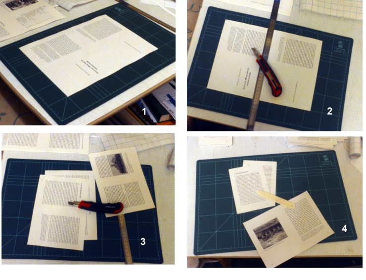 Betreff: Re: Uropas Kriegserinnerungen So, es ist geschafft! Ich habe Uropas Erinnerungen die ihnen gebührende Form übers Wochenende geben können (Frau war weg, Wein war da ... und etwas ZEIT!). Ich bin ein bißchen Stolz auf das, was mir da gelungen ist und finde, dass diese Form so gut zum Inhalt passt. Zuerst habe ich den gesamten Text nochmals im Zuge der Postings hier übergelesen und dann layoutet. Dabei war mir wichtig, dass die Optik nicht banal historisierend, aber auch nicht bloß modern wirkt. Das fing bei der Wahl der Schriftart schon an; Times NR geht ja mal gar nicht für so was und Arial verwende ich schon prinzipiell nicht mehr - einfach, weil sie auch für längere Texte nicht so richtig was taugt, finde ich. Es sollte eine schöne, klare und elegant-unauffällige Serife sein, und da bin ich auf die grandiose Palatino Linotype gestoßen, die sich einfach anbot und dem Text eine wunderschöne Buchoptik verleiht. Für die Überschriften bin ich stöbern gegangen, hat mir alles nicht gefallen und daher habe ich als Kompromiss die Trebuchet genommen, die passt auch ganz gut zur Palatino. Unten habe ich ein kleines Beispiel angehängt. Das Buchformat machte mir etwas Kopfzerbrechen, denn so recht konnte ich mich mit DinA5 nicht anfreunden, aber das war ja das Original-Format der Aufzeichnungen. Schließlich beschloss ich, ein A6 großes Taschenbuch zu gestalten, Schriftgröße 9 p Fließtext, 12 p Überschriften. Das sind ungefähr die Größen, die z.B. auch bei Kohlhammer oder UTB üblich sind. Auch bedeutete das Format A6, dass ich den Textkörper auf DinA4 ausdrucken und dann in zwei Teile schneiden konnte, so dass die Laufrichtung des Papiers korrekt ist. Beim Papier entschied ich mich für ein matt bräunliches Umweltschutzpapier, das zudem durch seine 75 g/qm etwas dünner und leichter ausfällt. Der Braunton verleiht dem ganzen einen etwas altmodischeren Look. Den Text habe ich dann in Word gesetzt und nach meinem schon mal geposteten Reihenfolge-Muster ausgedruckt. Dann ging's los! Unten sind ein paar Bilder angehängt mit den ersten Schritten. 1-3: Da ich keine Schneidemaschine habe, auf die ich mich verlassen kann, hab ich die Seiten manuell zerschnitten. 4: Anschließend wird jede Seite gefalzt und die Lagen korrekt ineinander gesteckt. Dann (5) ist der Buchblock lose fertig, die Reihenfolge muss aber nochmals kontrolliert werden - in den Druckereien machen die das mit aufgedruckten Balken, die korrekt liegen müssen. Geht hier nicht. Stimmte aber alles, daher habe ich die Lagen erst mal in der Presse (6) gelagert, damit sich die Falz einprägt und alles schön flach wird. Als nächstes (7 und kam meine Lade wieder zum Einsatz. Die Lagen werden gelocht und danach (9 und 10) zusammengenäht. Zur Stabilisierung des Blocks habe ich zwei Gewebebänder eingenäht. Kann man (11) hier ganz gut erkennen. Fertig ist der grobe Buchblock - nun kommt er in die "Bindemaschine", die mein Vater mal in den 1970ern für seine Kopien gebaut hat. Damit hat er die DinA4-Konvolute mit Klebebindungen versehen - ich nutze das Ding jetzt auch für das Leimen. Zuerst einlegen (12), dann den Balken drauf (13) und das Ganze umdrehen. Nun schaut der Rücken heraus (14) und wird in mehreren Schritten mit Buchbindeleim bestrichen (15). Der braucht etwas Zeit zum Trocknen, daher habe ich aus Gaze noch einen Streifen zurechtgeschnitten und auf den Rücken gelegt (dient dazu, den Block später fester mit dem Deckel zu verbinden). In der Trockenphase habe ich den Buchdeckel aus Pappe zurecht geschnitten (16).Wichtig ist der Stoff, der den Buchdeckel umschließt. Darauf kam es mir besonders an, deshalb habe ich lange gesucht. Und in unserem lokalen Fachhandel gab es diesen einen, tollen Wollstoff in Feldgrau mit einem roten Streifen! (17) Ich habe den gleich mitgenommen. Der Wollstoff ist etwas dicker, saugt sehr stark und ist im feinen Detail schwierig zu verarbeiten, weil er relativ grob gewebt ist. Zuerst habe ich die geplanten Deckel aufgelegt, den Umriss in der korrekten Größe eingezeichnet (18 und 19) und dann ausgeschnitten. Nun wurde es schwierig, denn der Stoff war nicht einfach zu kleben! Nahm ich genug Leim, kam er durch und verursachte Flecken auf der Außenseite. Nahm ich wenig, löste er sich wieder. Ich bin fast wahnsinnig geworden! Schließlich war es dann doch ganz einfach - aber man muss erstmal drauf kommen: Leim auftragen, kurz antrocknen lassen und DANN erst auf den Stoff. Der Leim wird beim Trocknen erst richtig klebrig und zäh, zieht also nicht tief ein, pappt aber bombenfest. Puh! Mit viel Druck habe ich so die Pappe auf den Stoff bekommen (22). Knifflig war es, den überstehenden Rand umzuschlagen und festzuleimen; der störrische Stoff klappte stets zurück. Hat aber funktioniert! Daraufhin hab ich mir ein Glas Wein gegönnt, wie man sieht. Für das Vorsatzpapier habe ich 120 g/qm Zeichenkarton verwendet, weil ich etwas spezielles vorhatte. Hinten im Buch sollte eine Tasche sein, in der Props untergebracht sind - farbkopien der Dokumente, des Ausweises und Kartenmaterial. Dazu habe ich zuerst die Seitenteile der Tasche entworfen, im Rechner millimetergenau geplant und dann gedruckt (25). Kann man schlecht sehen hier auf dem Bild. Ausgeschnitten und gefalzt sehen sie so aus (26). Dazu kommt (27) der Rest - und dann ist die "Froschtasche" (ich glaub, so nennt man die Dinger) fertig (28). Nun musste das Buch zusammengefügt werden (29). Nicht zu viel Leim drauf! (30) Dann feste drücken - damit der Leim nicht seitwärts rausquillt und die Seiten verklebt, lege ich immer ein Wachspapier oder Backpapier dazwischen. Fast fertig (32)! Fehlt noch die Tasche, die hinten eingeleimt wird (34). Als letztes schreibe ich mit einer einfachen Schablone den Titel darauf. Ich benutze hin und wieder auch einen Drucksatz dazu, aber wie gesagt - dieser Wollstoff braucht eine andere Umgangsart! Und fertig. Ich glaube, das ist durchaus eine angemessene Form für Uropas Erinnerungen. Ich we