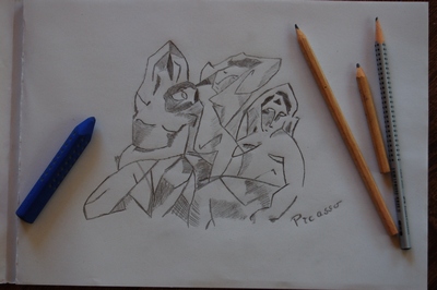 Betreff: Re: Krims, Krams und Krempel - Young Indy Stuff only Ich hatte mal wieder Muße, zum Zeichenstift zu greifen. Daher heute etwas Kubismus mit Bordmitteln - die von Norman Rockwell gezeichnete und von Picasso signierte Skizze aus der "Paris 1908"-Folge, Vorlage hier: http://www.youtube.com/...t=1h29m27s |