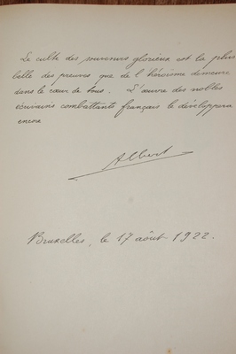 Betreff: Re: Krims, Krams und Krempel - Young Indy Stuff only Hier mal mein neuester Erwerb. Wieder kein eigentliches Prop im engeren Sinne, aber etwas, was sich ein gewisser Henri Defense sicherlich auch ins Regal gestellt hätte - dieser 1923 erschienene dicke Band, der die Geschichte der belgischen Armee im Ersten Weltkrieg nachzeichnet. Mit einer handschriftlichen Widmung des belgischen Königs Albert, jeder Menge zeitgenössischer Fotos, Karikaturen, Zeichnungen und großformatigen Plakaten. Eine tolle Quelle für mein zu schreibendes Diary und trotz seiner 90 Jahre im Topzustand. :-) |