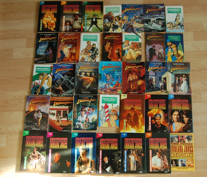 Betreff: Re: Krims, Krams und Krempel - Young Indy Stuff only @The German Danke! Werd wohl demnächst mal die Picasso-Zeichnung von Miss Seymour angehen. ![]() Da dieser Thread sich ja jetzt im "Sammlungen"-Unterbereich befindet, darf ich auch einmal ein wenig mehr aus der persönlichen "Young Indy"-Kollektion zeigen. Zunächst einmal meine Primärquellen, die mir neben den DVDs und dem "Lost Journal" als Anleitung für das Füllen meines Diarys dienen. Da wären zum einen die 12 englischsprachigen Dark Horse-Comics und die auf dem zweiten Foto abgebildeten Bücher, die in Reihenfolge oben links nach unten rechts den Zeitraum zwischen 1908 und 1920 abdecken. Die daran anschließenden ersten beiden MacGregor-Bände hab ich mittlerweile auch, wie schon mal angemerkt, werde ich mich wahrscheinlich auf den Bereich bis 1930 beschränken. Die Bücher mit dem grünen Label sind im Übrigen die sieben nur in Frankreich erschienenen Ausgaben der "Indiana Jones jr"-Reihe. |