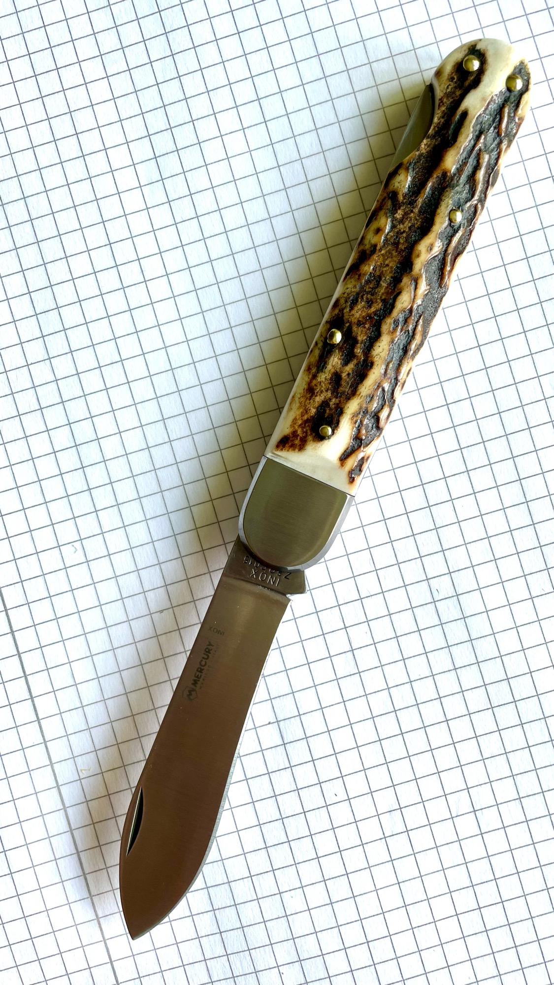 Betreff: Re: Das Messer - Indy`s knife Ich habe mir jetzt auch ein Messer gegönnt. Da es den Linder nicht mehr gibt, und das von Böker, 1. viel zu teuer, und 2. das Böker Loko im Griff trägt, habe ich bei der italienischen Firma Mercury das Model 921-1DC entdeckt. Hatte mich inklusive Versand knapp 77¤ gekostet. 1/3 im Vergleich zum Bökermodell. Mir gefällt das Messer ziemlich gut. Es ist unausgefaltet 11,5cm lang. Gesamtlänge ist 19,5cm. Den leichten Bauch auf der Schneide kann man noch zurechtschleifen. Aber so hat man erstmal mehr Messer :-) |