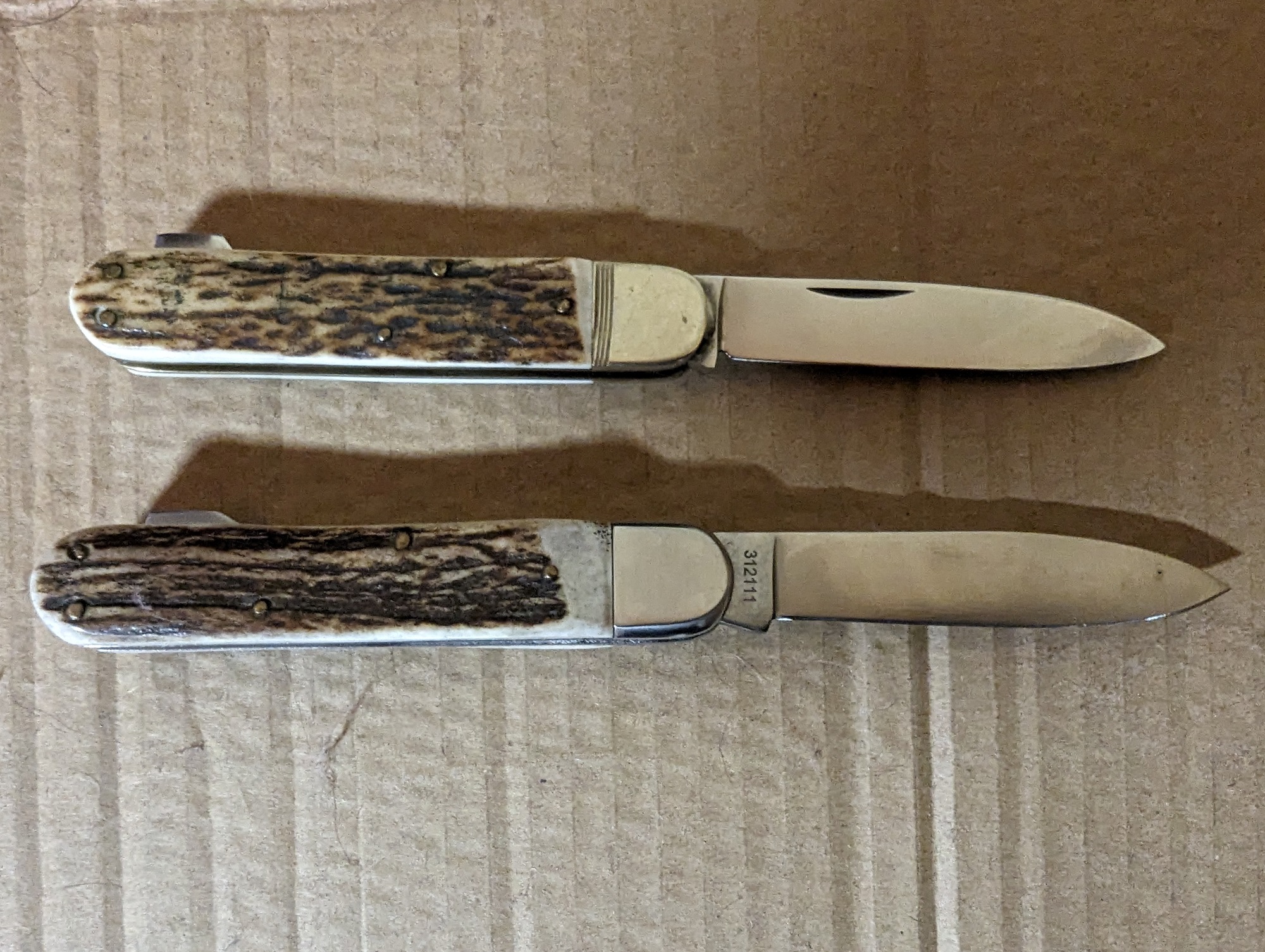Betreff: Re: Das Messer - Indy`s knife ... falls es interessiert und noch nicht besprochen wurde, es gibt noch eins von Hubertus, das nicht ganz screen-unaccurate ist. Hier ein paar shots im Vgl zu meinem Linder 312111. Das obere, kleinere ist das Hubertus. |