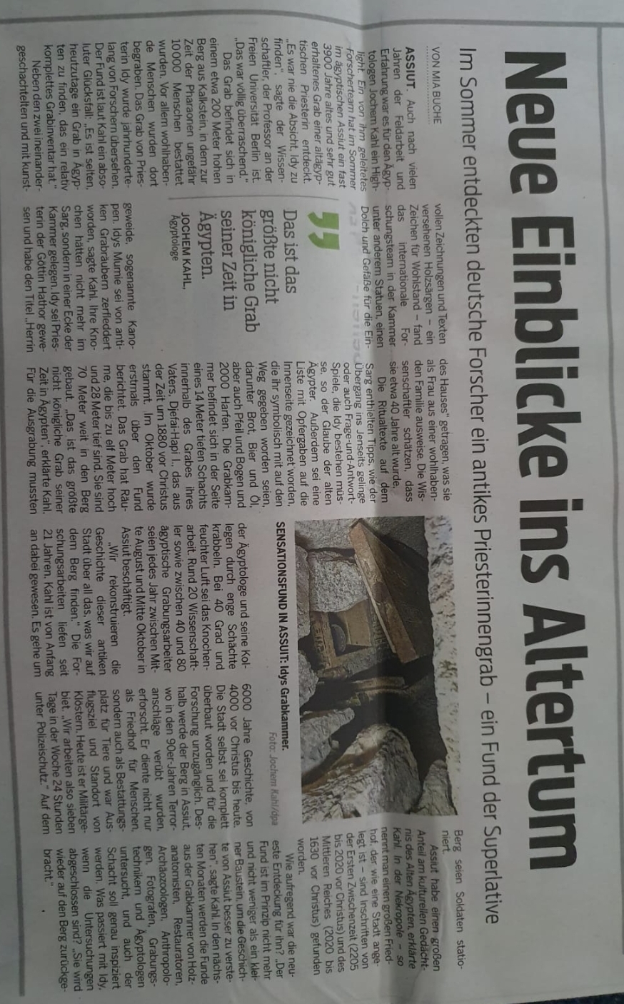 Betreff: Re: Neues aus Ägypten Grab Priesterin Idy Artikel Neue Presse Hannover 25.12.24 |