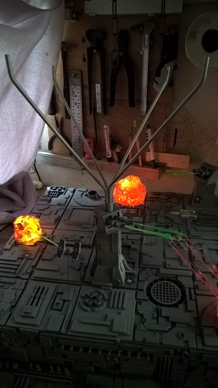 Betreff: Re: Modellbau - Millenium Falcon von Deagostini die todessternoberfläche kann noch mehr. ich habe ein soundmodul eingebaut. star wars melodie, falke startet, falke schießt, sprung auf lichtgeschwindigkeit, lichtgeschwindigkeit versagt, fehlzündung, tie's greifen an... |