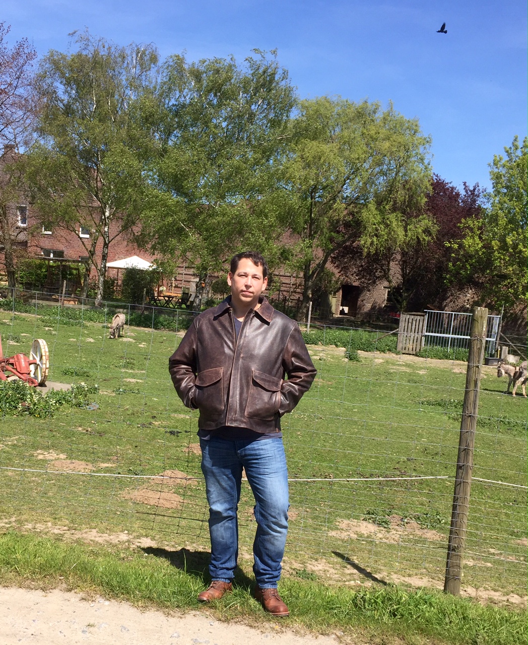 Betreff: Re: Indiana Jones Jr 1981 IndyGear So , bin gerade von einem 20 km Spaziergang zurück gekommen und hab da mal im Schatten und in der Sonne ein paar Fotos machen lassen. Leider ist mein Vater nicht so der Knipser und er hatte da auch nicht so Bock drauf , da Vatertag ist , sei ihm verziehen. Hoffe dennoch ihr könnt mit den Bildern was anfangen bis bessere kommen. Jedenfalls sieht man so schonmal ganz gut, wie das Leder farblich aussieht. Schnitt jetzt eher weniger , weil keine von hinten und der Seite ( aus eben erwähnten Gründen ) gemacht wurden. Meine Redwings hatte ich auch an und muss sagen meine Füße taten erst am 18ten Km etwas weh. Habe an der Ferse nun zwei kleine Blasen, aber ist beim einlaufen nun mal so. Ansonsten bin ich mit der Jacke und den Schuhen nach wie vor zu frieden. |